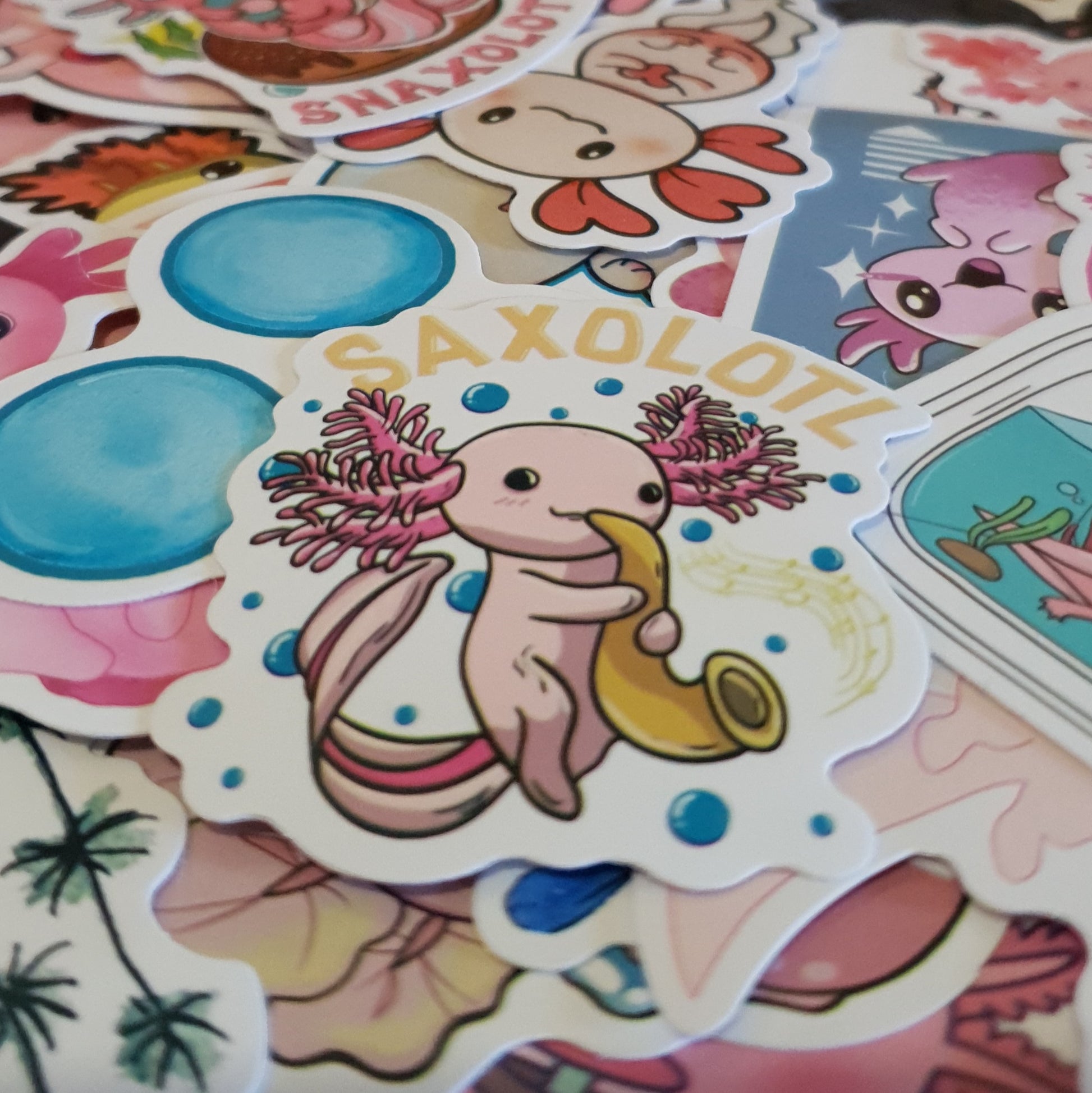 Adorable Axolotl Stickers. 10 Pack of Axolotl themed Stickers.