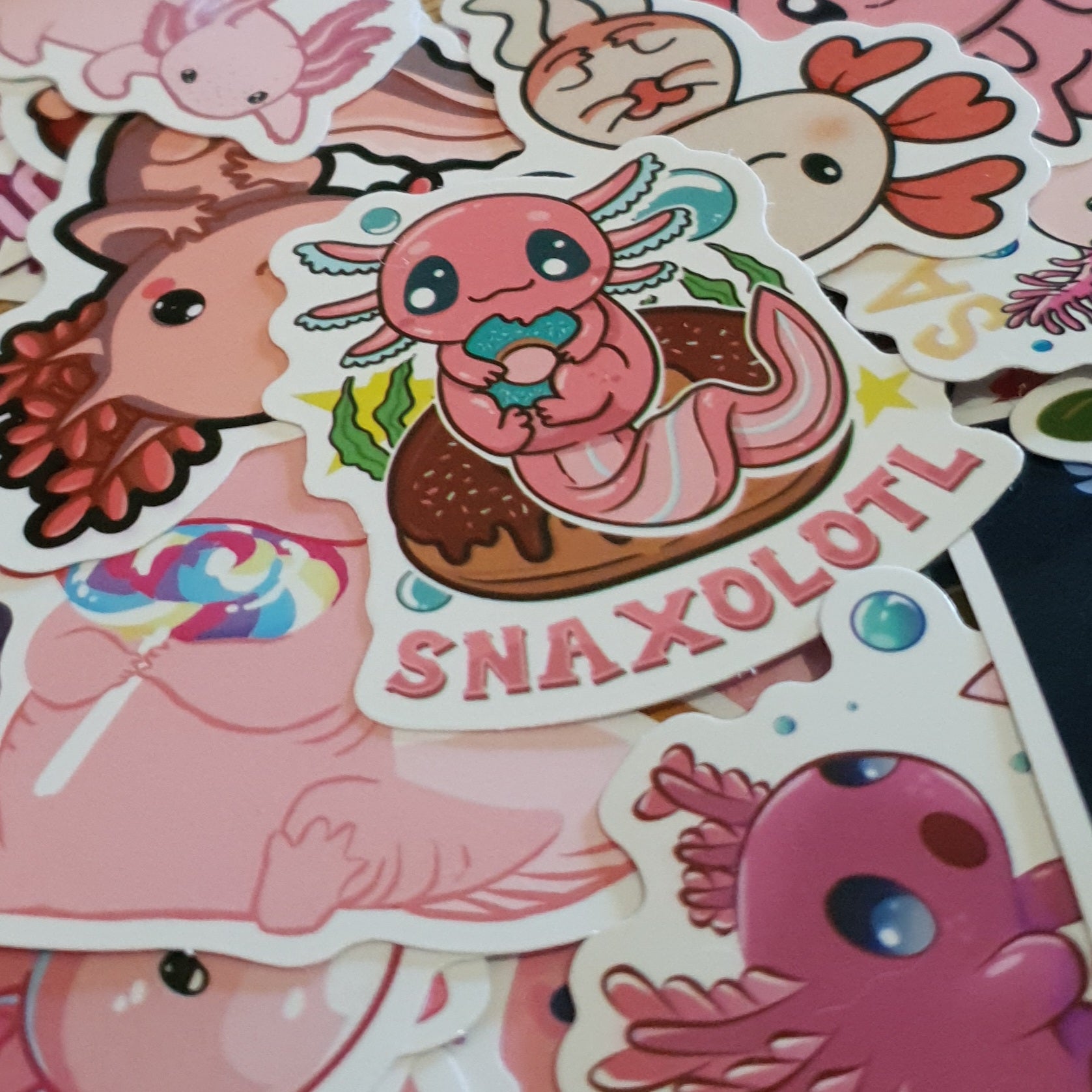 You will receive 10 randomly selected axolotl themed stickers! These stickers are water resistant! Able to use for outdoor or vehicle use! Images may fade over time if left in harsh sunlight.