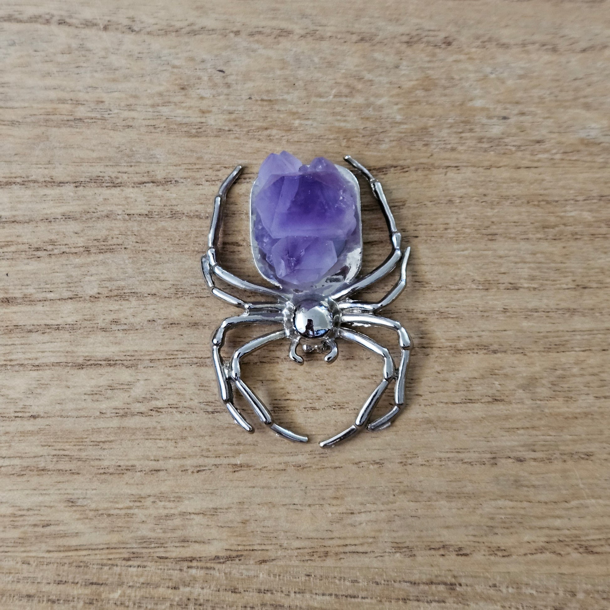Unleash your inner arachnophile with our Amethyst Raw Spider! This metal spider features a large Amethyst raw piece on its back for a spooky addition to your collection. Don't be scared they don't bite! Be captivated by its alluring beauty and unique charm.