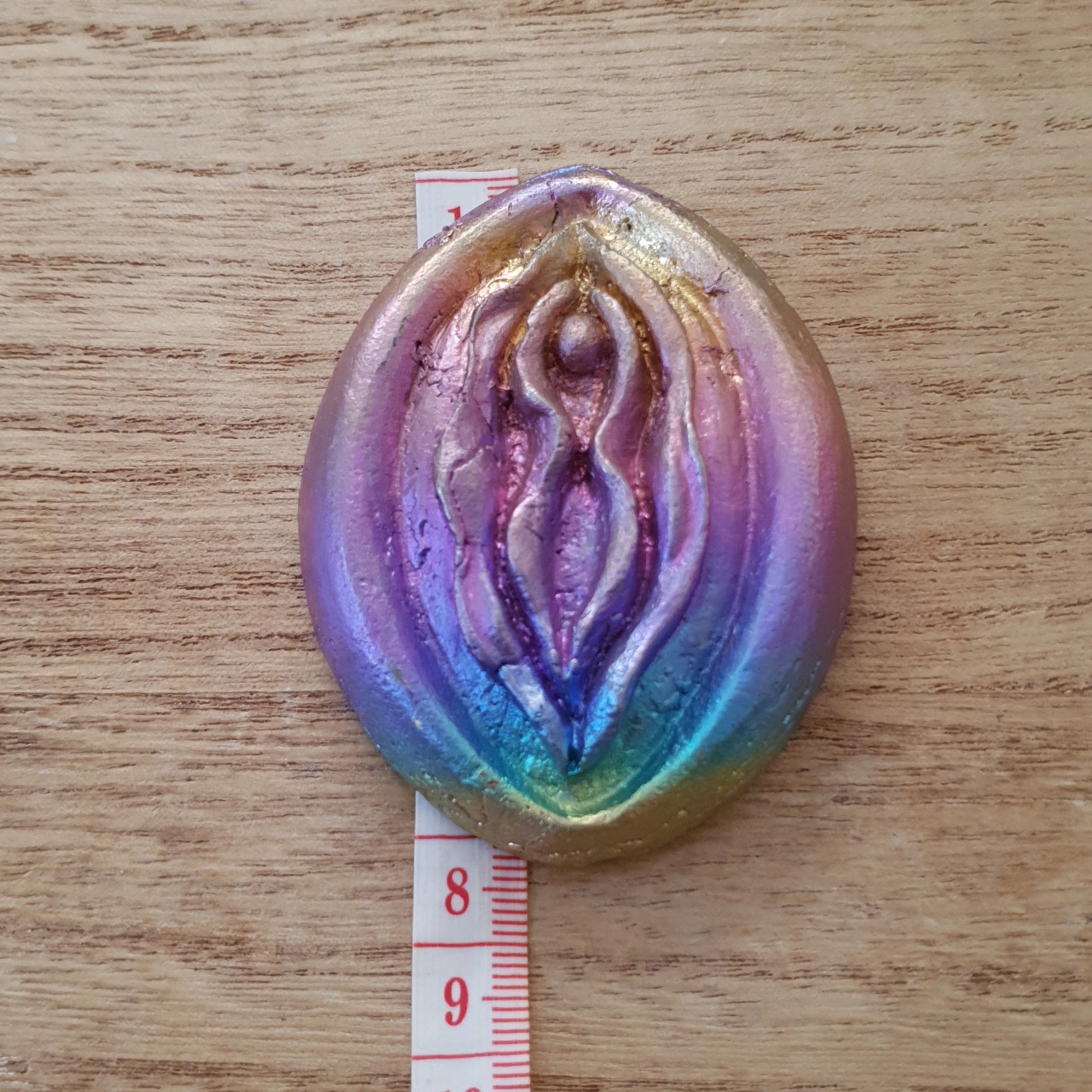 Experience the stunning beauty of our Bismuth Lady Part! Made with smelted bismuth, this vagina is a feminine masterpiece that features a unique rainbow sheen. Add some excitement and color to your life with this big beautiful unique piece!