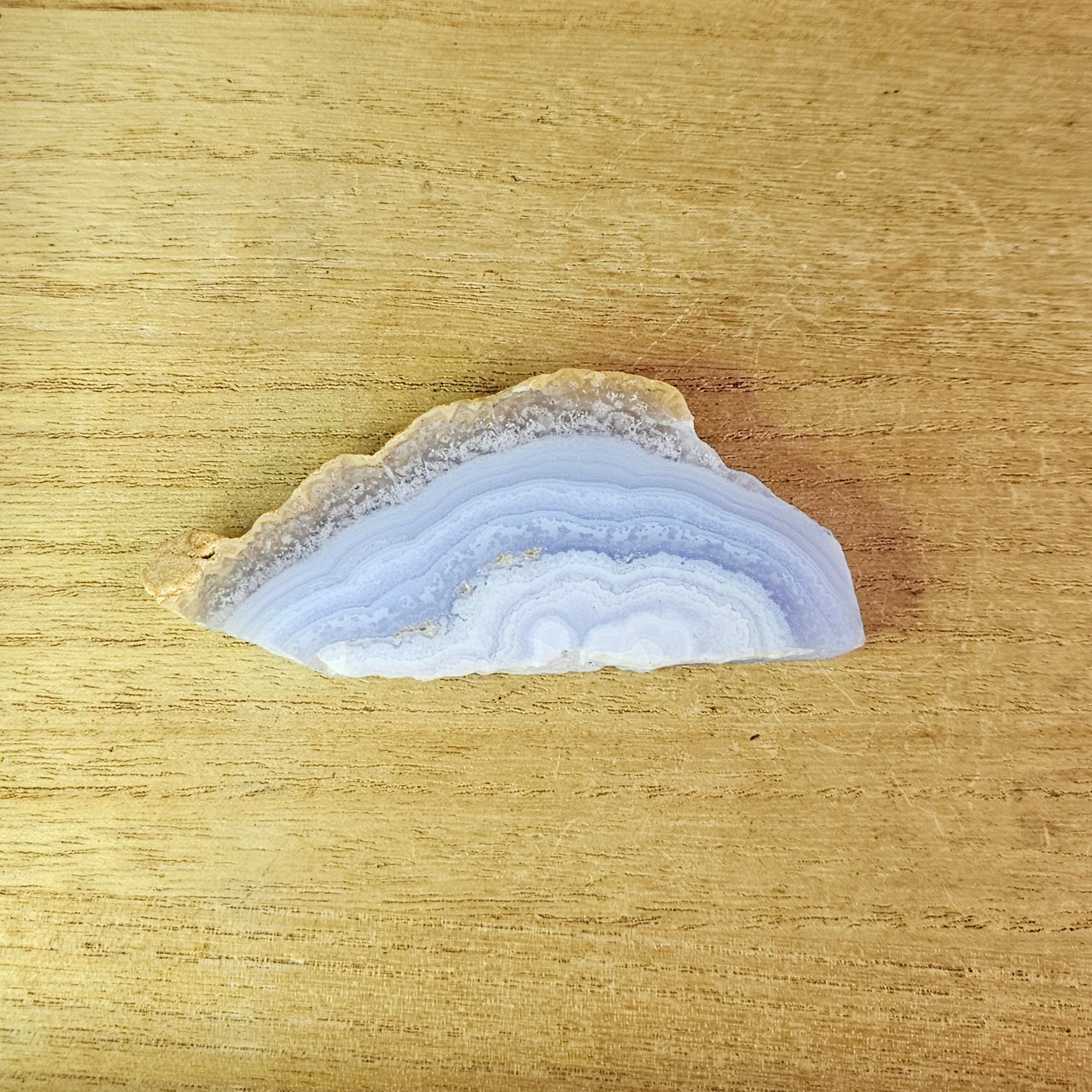 Bring the natural beauty of blue lace agate into your home with our polished slab. The smooth surface and intricate patterns make it a perfect addition to any decor. Transform your space with the calming and peaceful energies of this stunning piece.