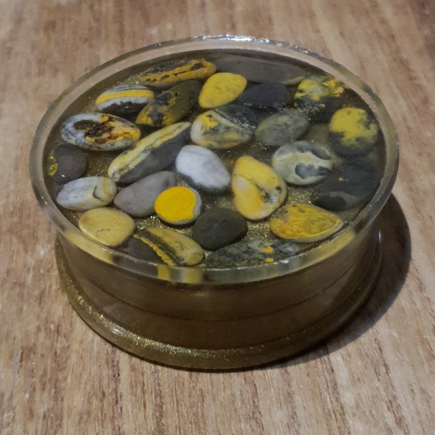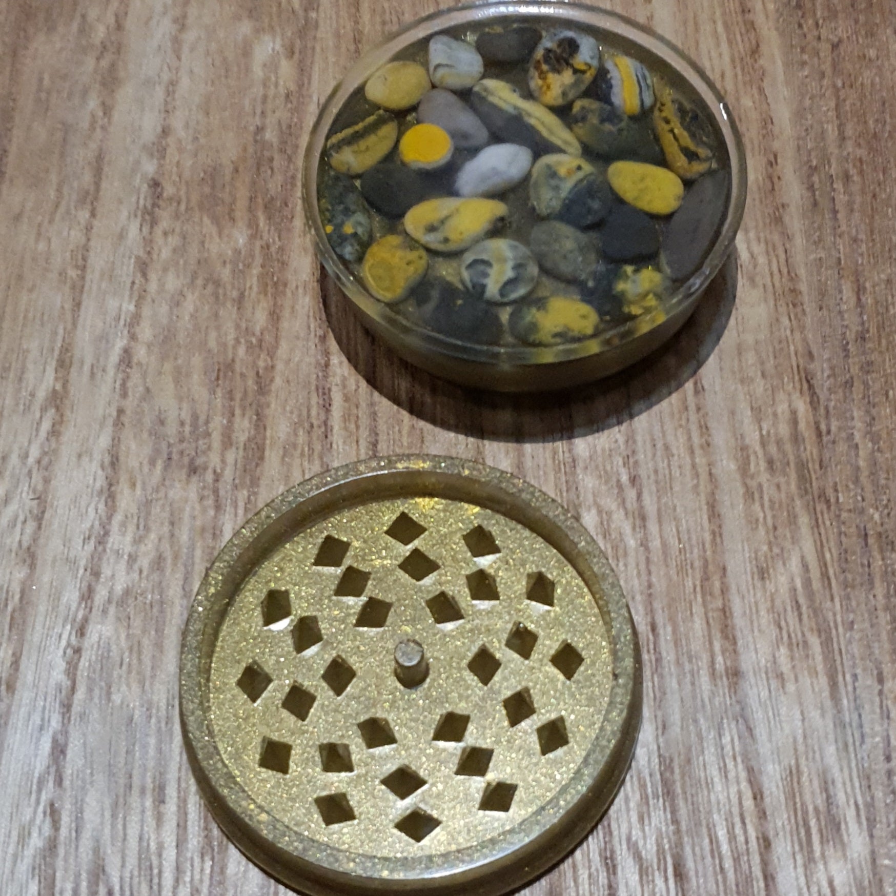 Bee pleased by this Bumblebee Jasper Grinder. Made with epoxy resin with super sharp teeth designed for a fast chop.