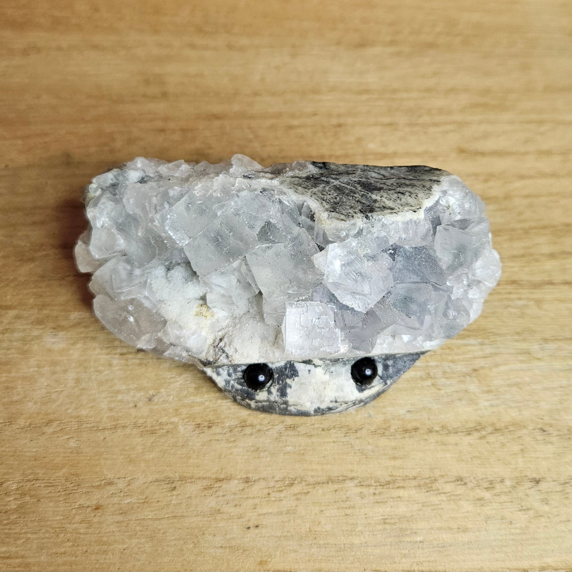 Meet your new best buddy! Clear Fluorite Raw Cluster! With its adorable little eyes and cute mouth, this cluster will brighten up your space and your day. Its playful presence brings positive vibes and a unique touch to any room. Get ready to make a new friend with this little cutie! You'll never feel lonely with this Lil guy in your collection!
