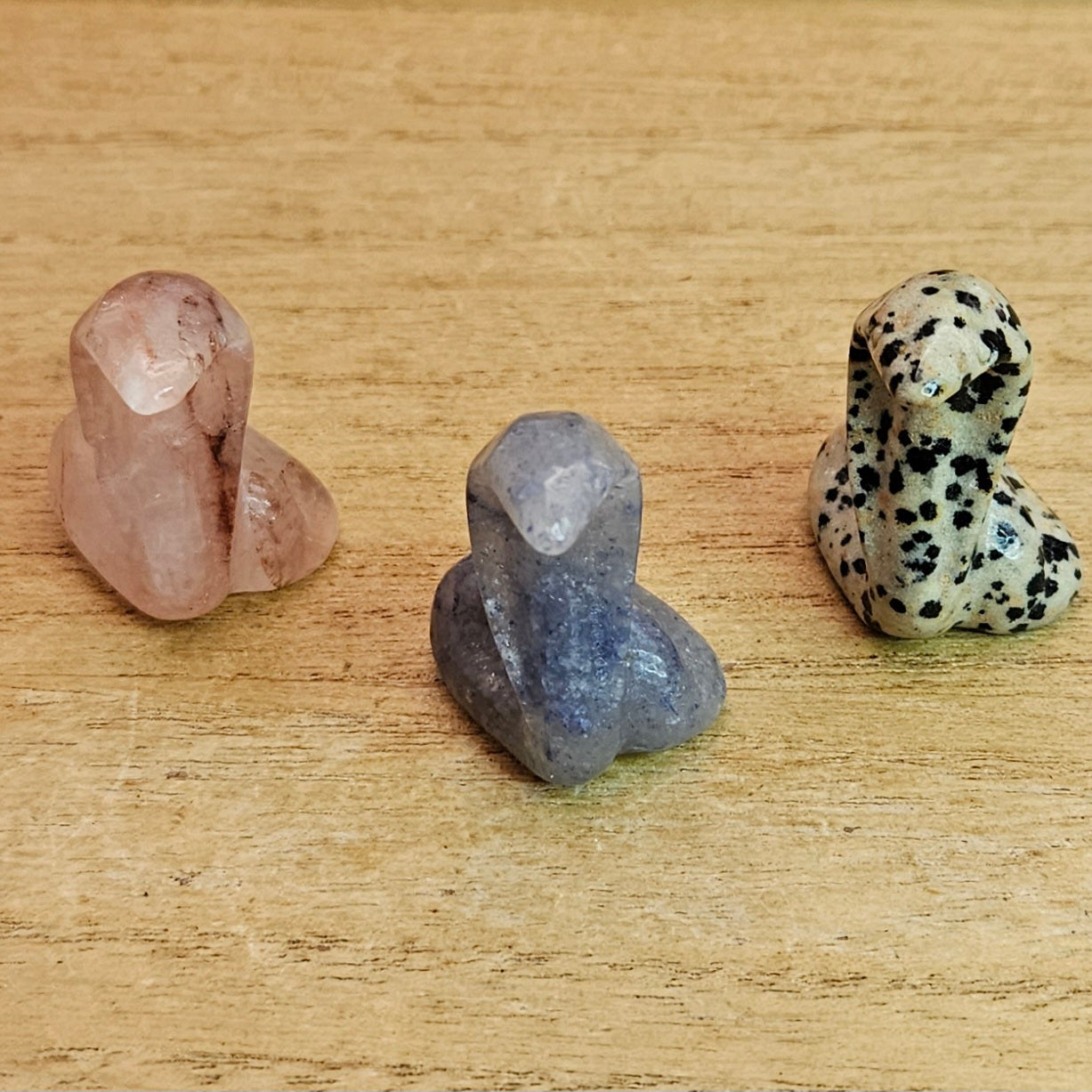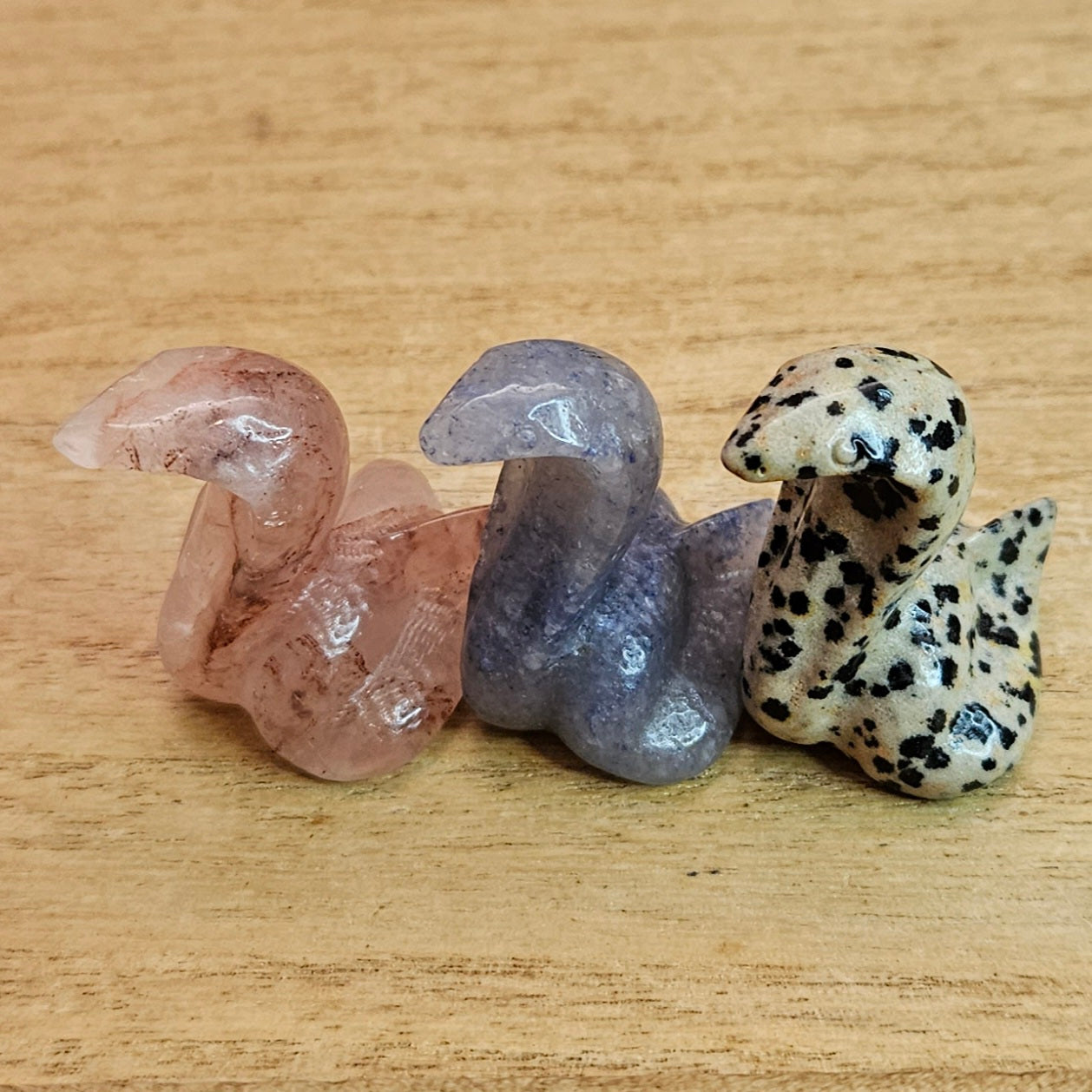 Add a unique and charming touch to your home with our Cobra Snake Carvings! Choose from Fire Quartz, Blue Aventurine, or Dalmatian Jasper to fit your personal style. Perfect for snake lovers or anyone looking for a fun piece of decor.