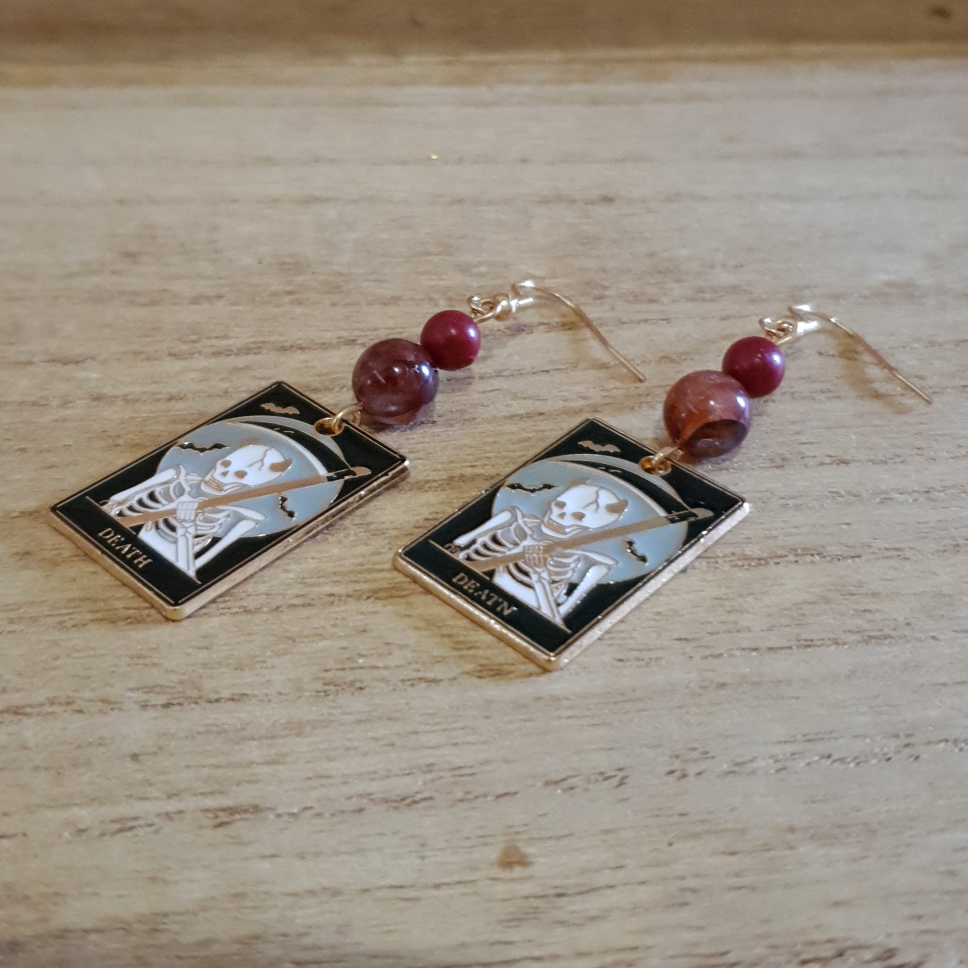 Death Tarot Earrings. Cinnabar and Fire Quartz Death Earrings.