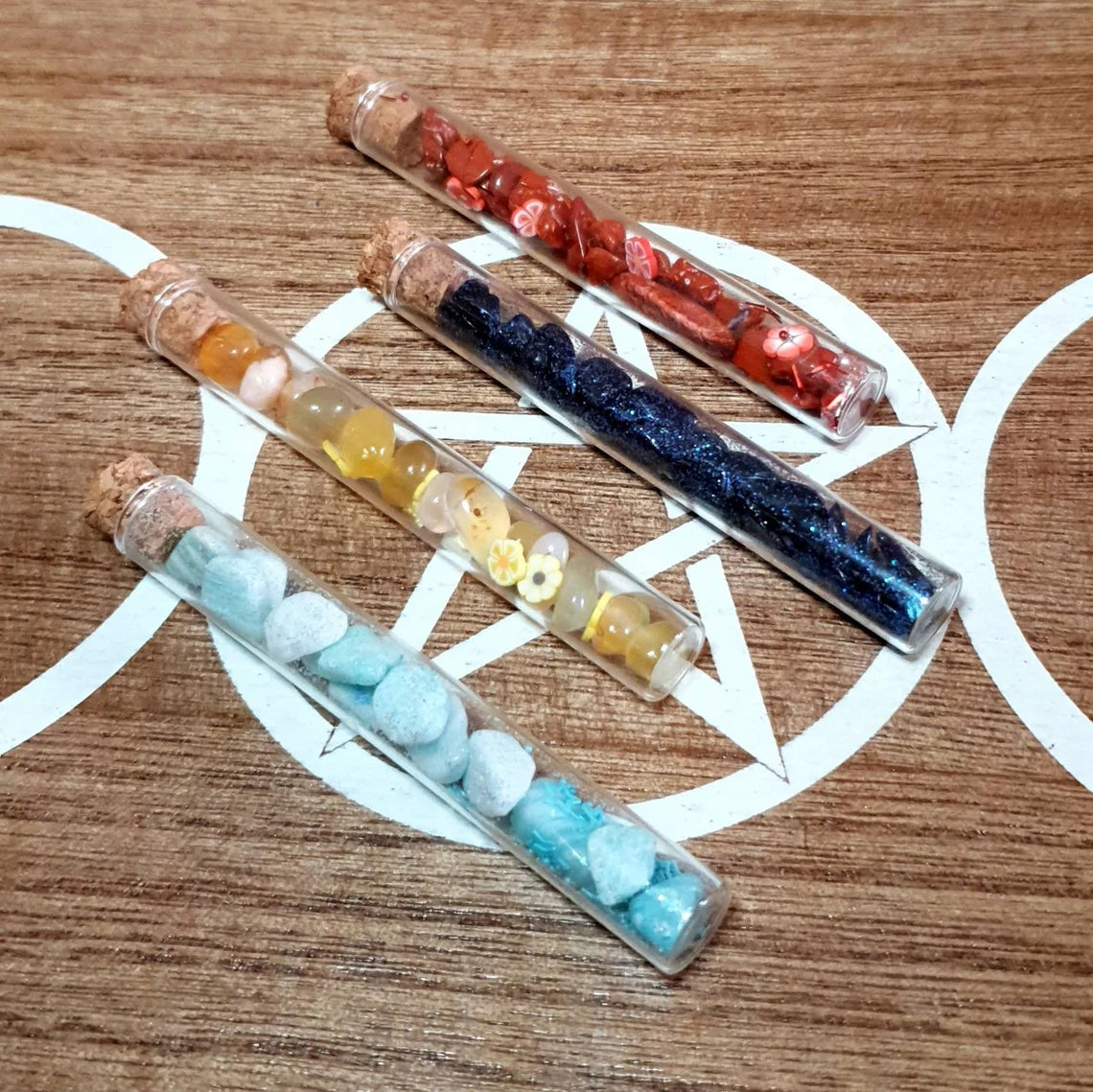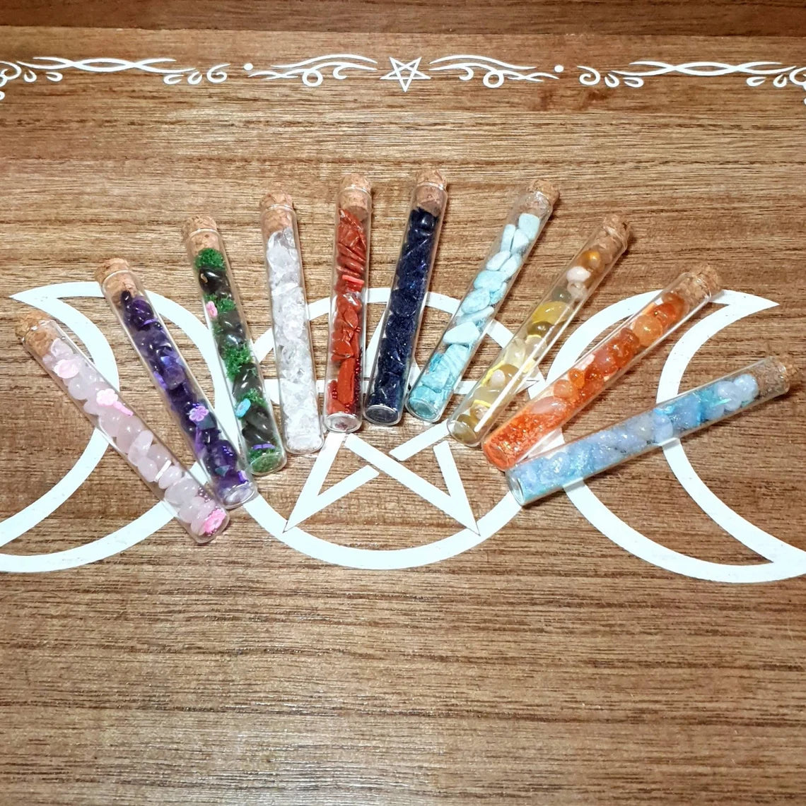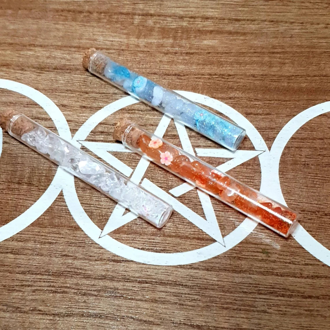 To ensure your crystals and glitter do not make a mess regularly check the cork is not loose, gently twist the cork from side to side until firmly in place. Please take caution while handling the fairy tubes as they are made from glass and too much pressure applied on the cork could cause breakage. Please remember to cleanse your Crystals properly upon arrival.