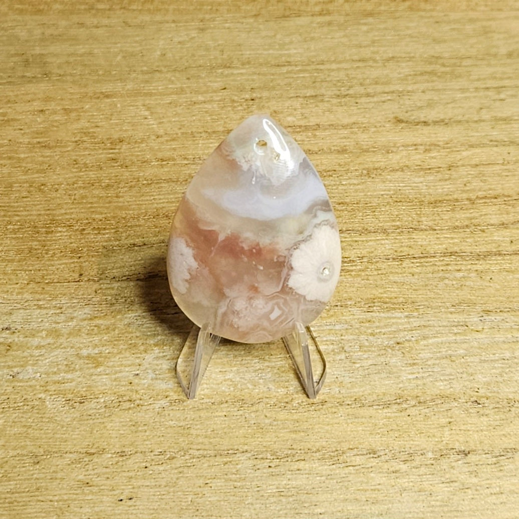Flower Agate Tear-drop Cabochon. *Pre Drilled*