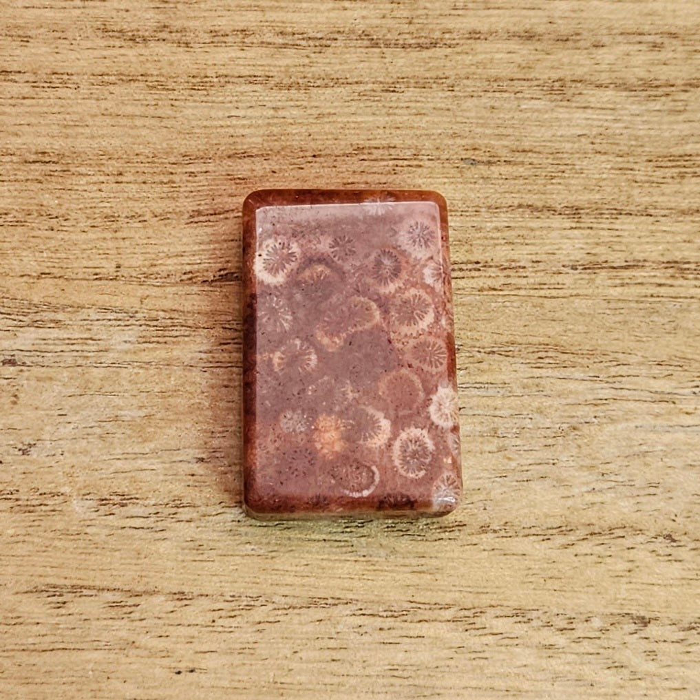 This Fossil Coral Cabochon features unique red burst patterns, with flat edges on each side it is the perfect addition for DIY jewelry making and wire wrapping. Add a touch of natural beauty to your creations with this stunning cabochon.