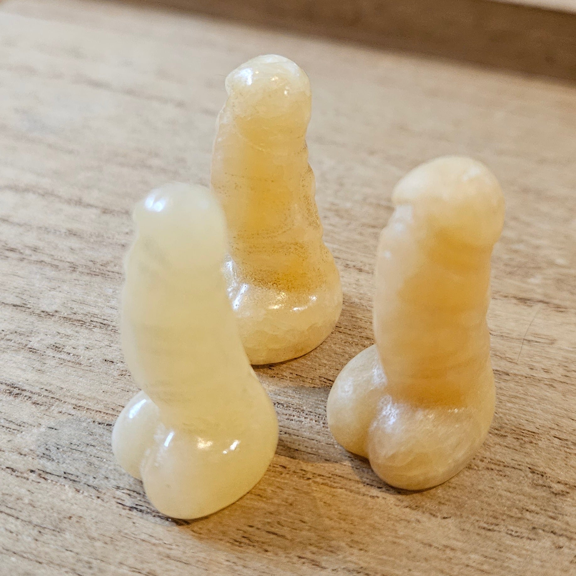 Get ready to add some fun and quirkiness to your decor with our Honey Calcite Detailed Ding Ding. This unique carving in the shape of a dick (you bet I said it!) will bring a playful touch to any room. Enjoy the benefits of honey calcite while also enjoying a good laugh.