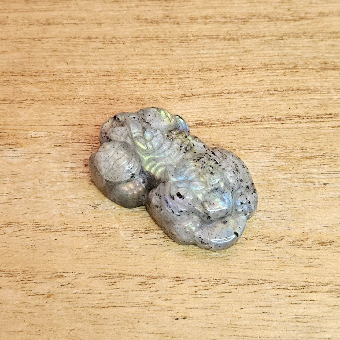 A tiger with coins symbolizes wealth, prosperity, power, and good fortune, especially in Chinese culture, representing strength, courage, and success in business, often used as a Feng Shui item or Chinese New Year decoration to attract abundance and protection. Bring the strength and abundance of the tiger into your life with this Labradorite Tiger Flat Carving. Made from powerful Labradorite, this carving features a full rainbow of flashes, adding a touch of magic to your space. Perfect for anyone seeking courage and prosperity.