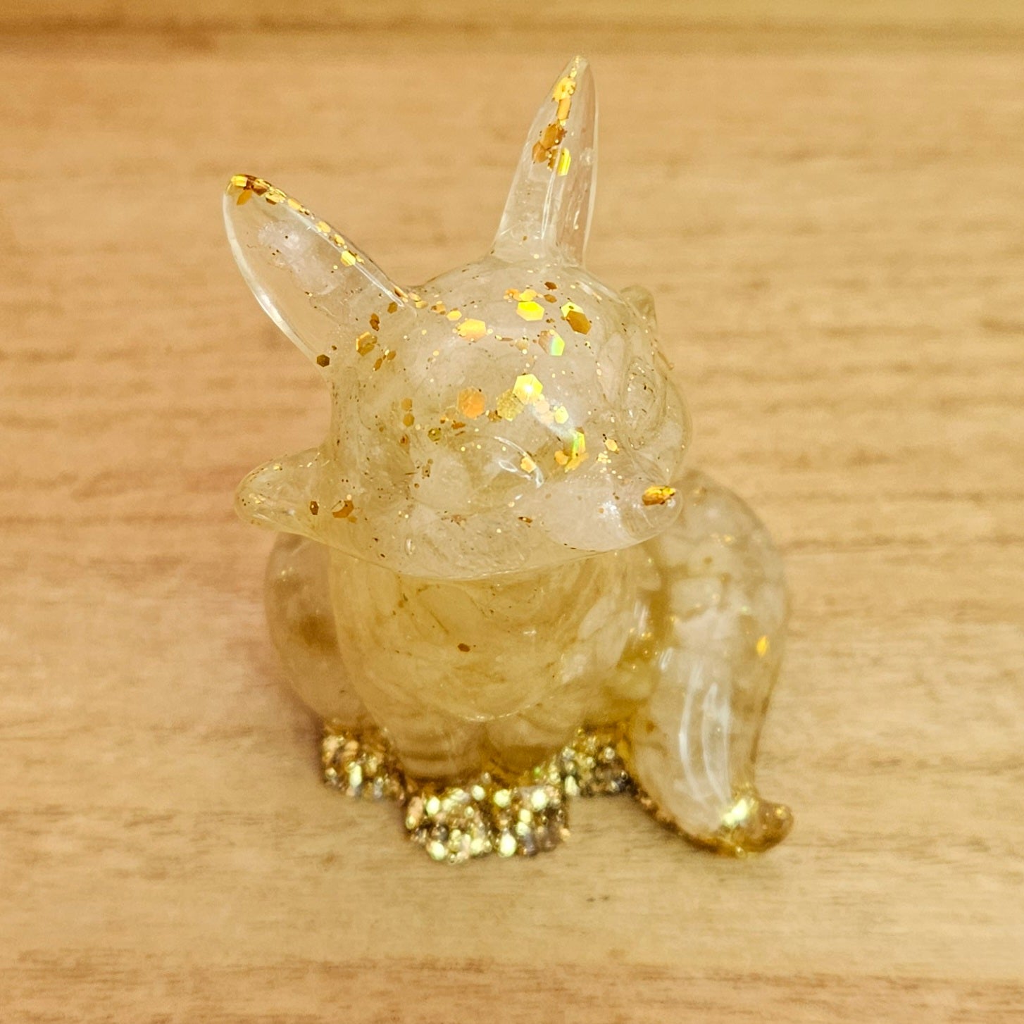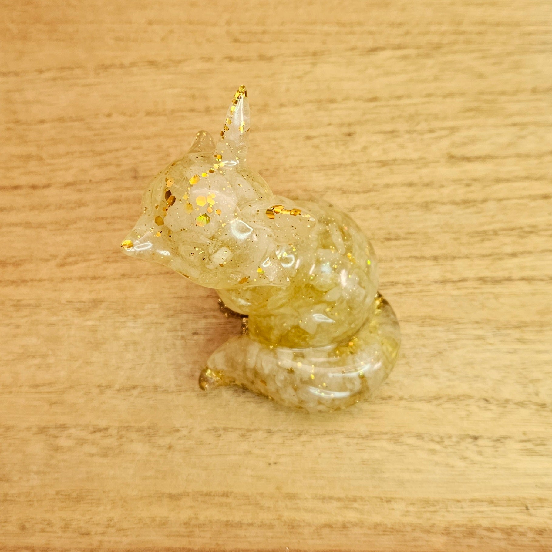 Add a touch of whimsy to your home decor with our Lemon Quartz Resin Fox Ornament. Made from high-quality resin and accented with stunning Lemon Quartz chips, holographic gold glitter, and golden color chips at the base. Perfect for any fox lover or as a unique addition to your ornament collection. Lemon quartz is created by heating amethyst or yellow or clear quartz and iron together through a process of gamma-ray irradiation followed by a heat treatment for stabilization. This process gives lemon quartz its brilliant yellow color.