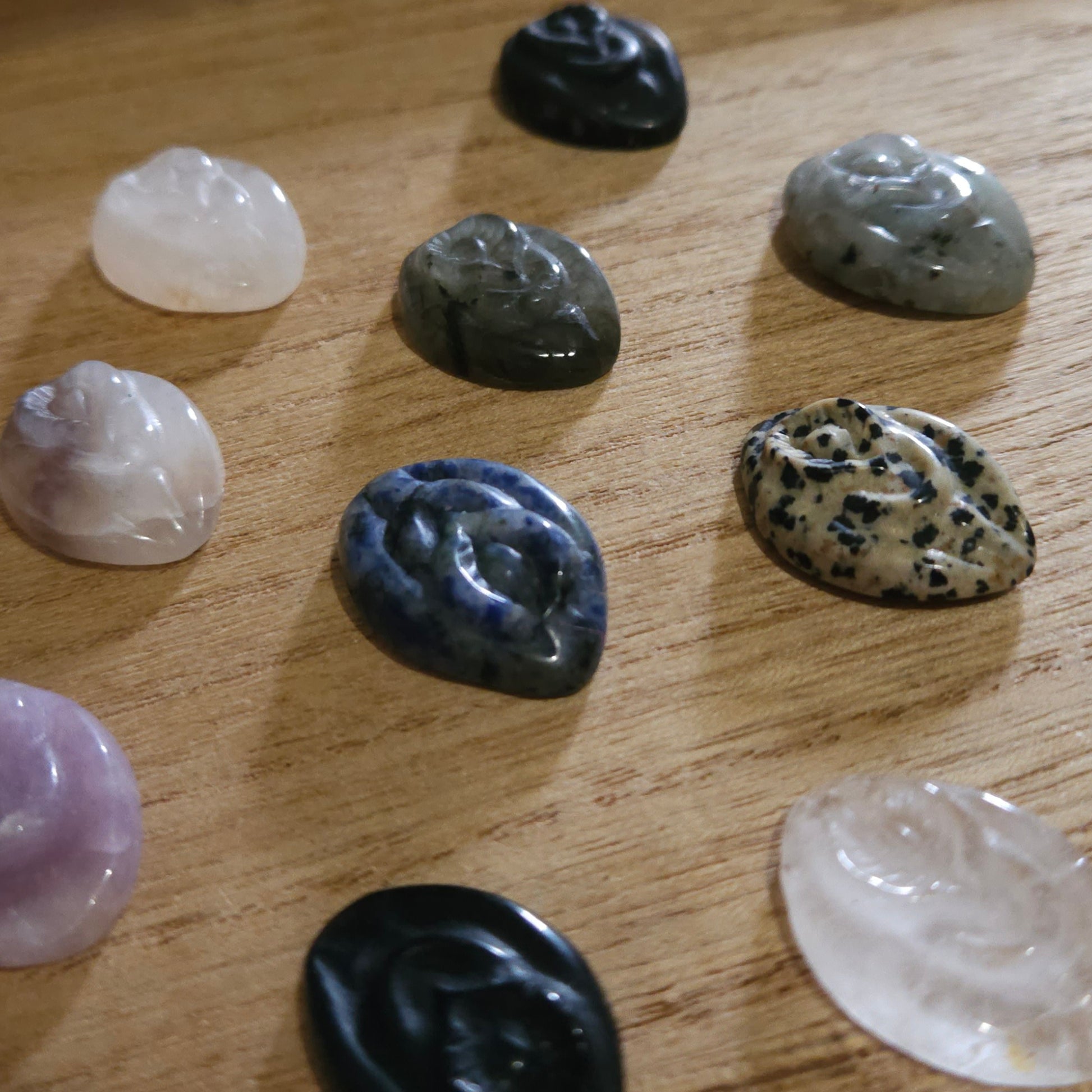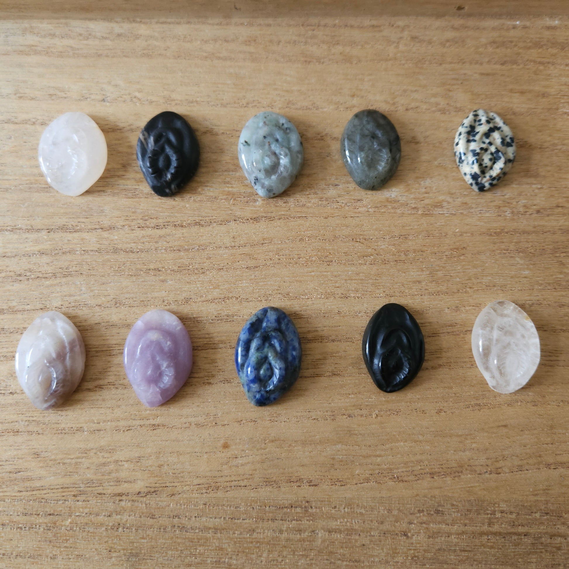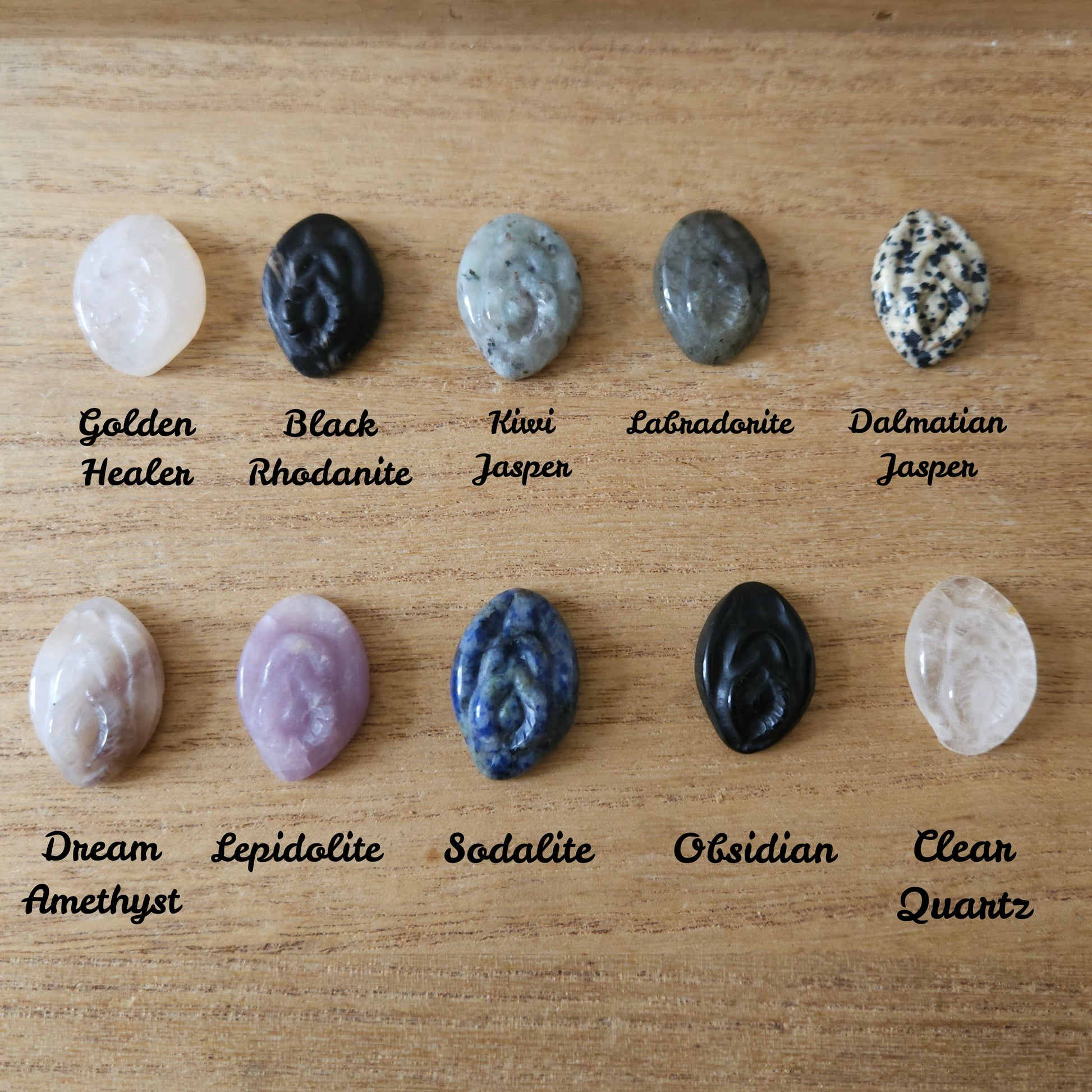 Get your hands on these Lil Pussy Carvings, small crystal carvings shaped like vaginas. Available in various materials, these unique pieces are perfect for adding a touch of quirkiness to any space. *No pun intended* Perfect for display or as a fun gift, these carvings are the ultimate symbol of femininity. Embrace the power and sensuality of our Lil Pussy Carving today!