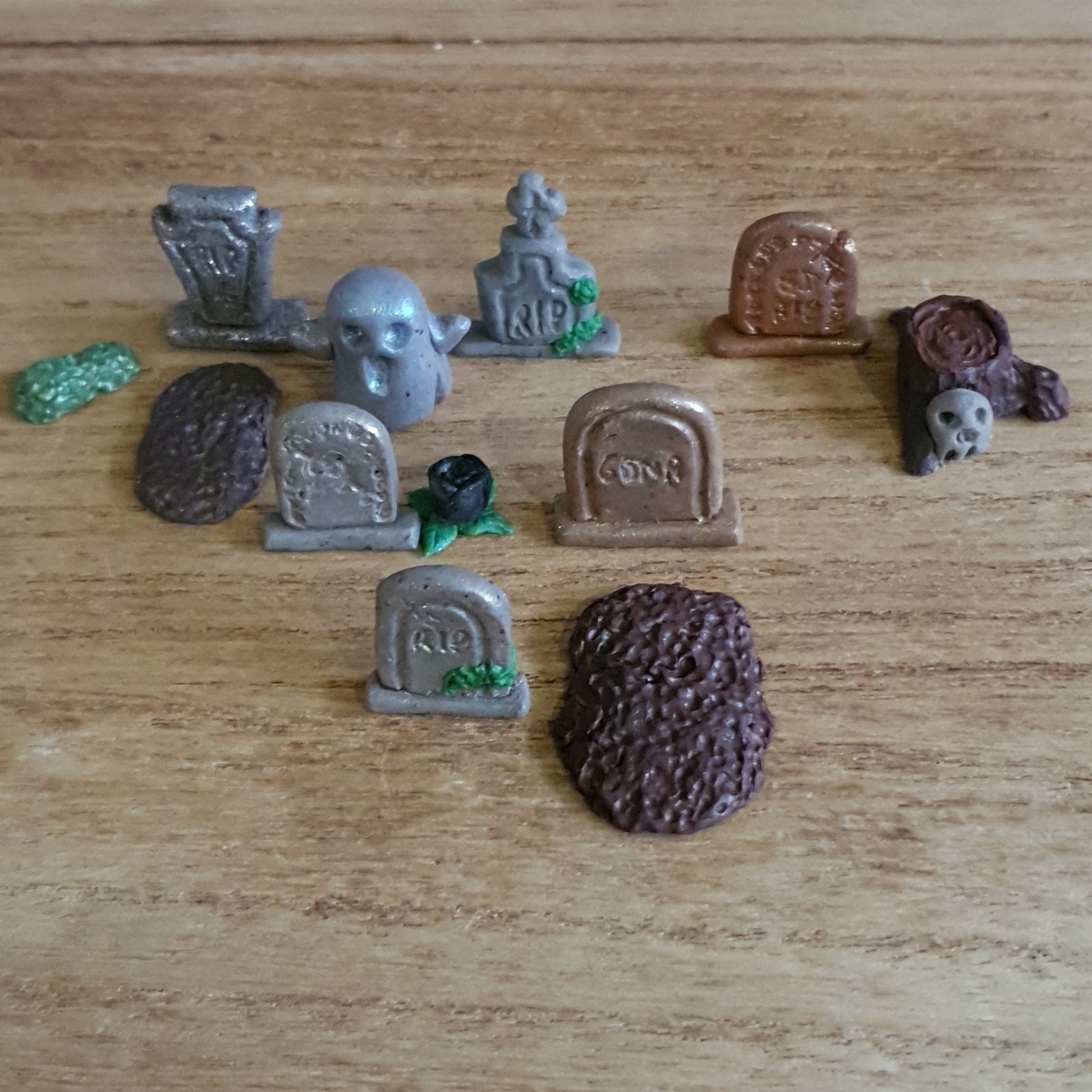 Miniature Cemetery Collection. Handmade Polymer Clay Cemetary Scenery Set.