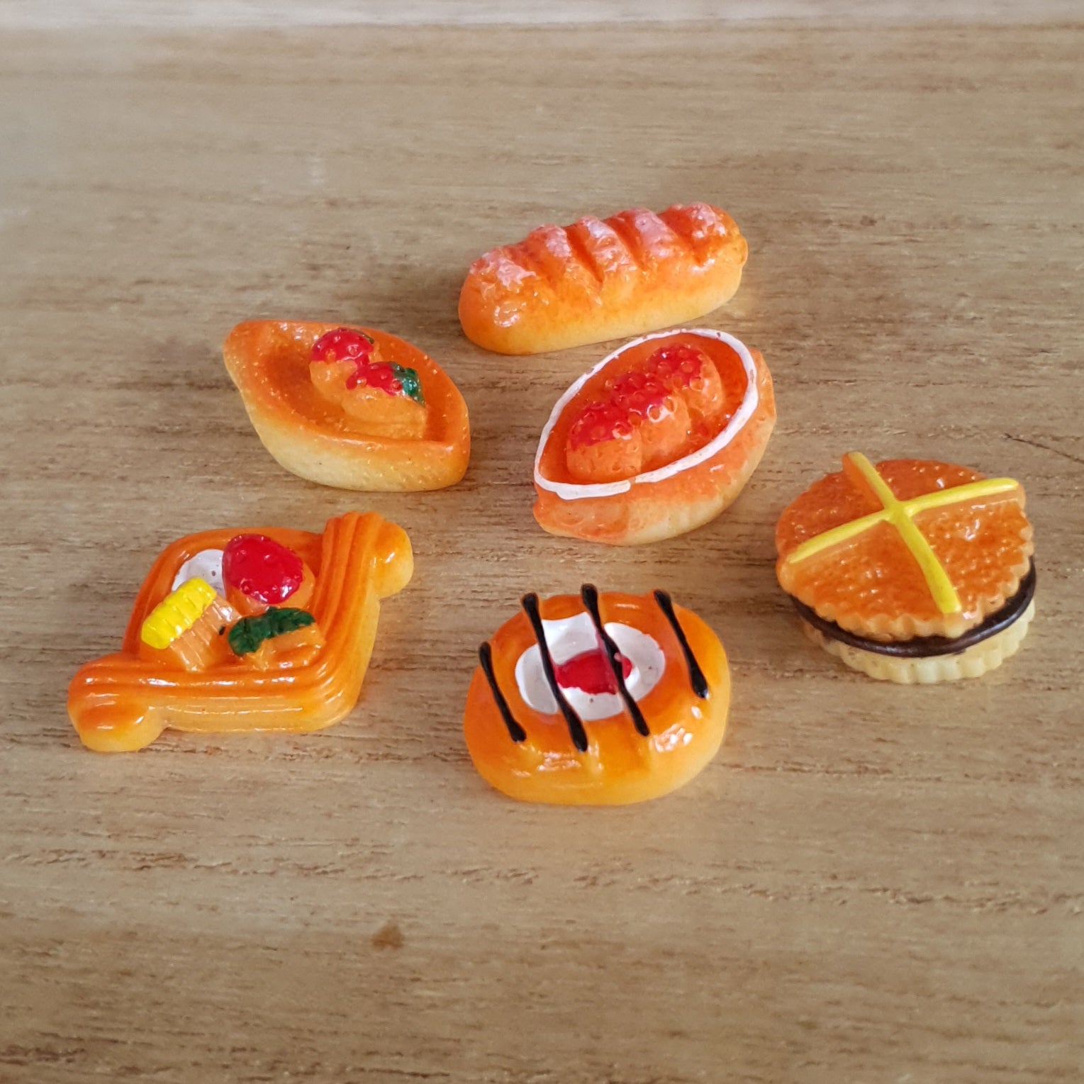 An assortment of cute food miniatures are available, Made of acrylic plastic these cute little pieces are perfect for doll house accessories, terrarium decorations or simply just to decorate your house of fun with!