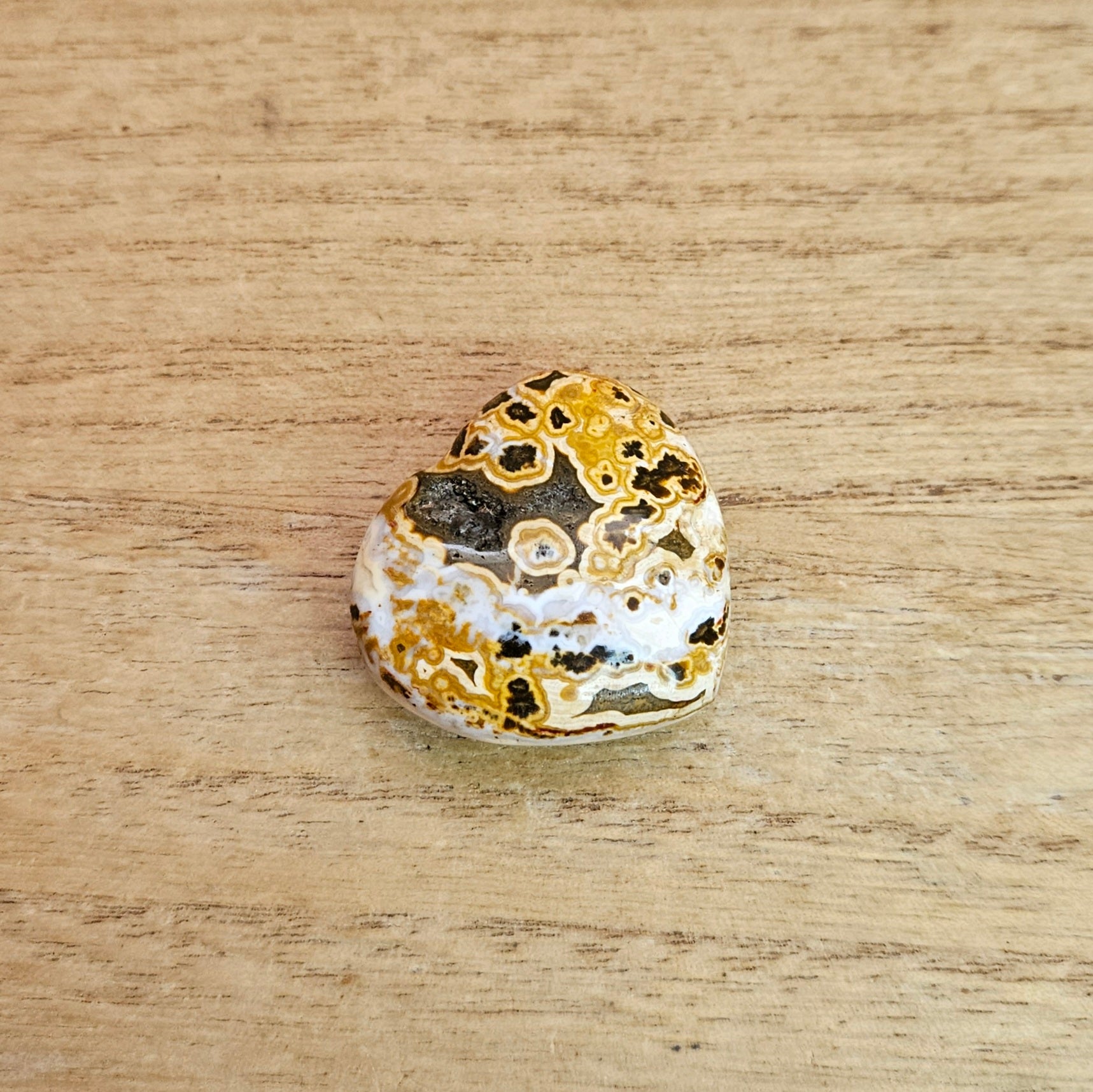 Metaphysical Properties - Believed to be a nurturing stone associated with the Heart, Solar Plexus, and Throat Chakras, known for promoting emotional healing, self-love, and acceptance by bringing unresolved feelings to the surface to be processed with gentle, flow-like energy, fostering joy, peace, and positive self-expression. Its circular patterns symbolize nature's cycles, encouraging balance, patience, and connecting one's inner world to the external flow, making it great for stress relief and improving relationships.