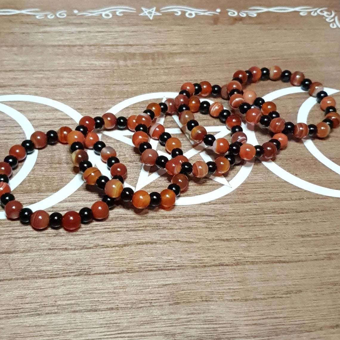 High Quality Patterned Red Carnelian Beaded stretch Bracelets. Gorgeous Handmade Carnelian Beaded Bracelets and Black Glass beads. Giving off an awesome alternative aesthetic these handmade Bracelets will suit any spooky gal or guy!