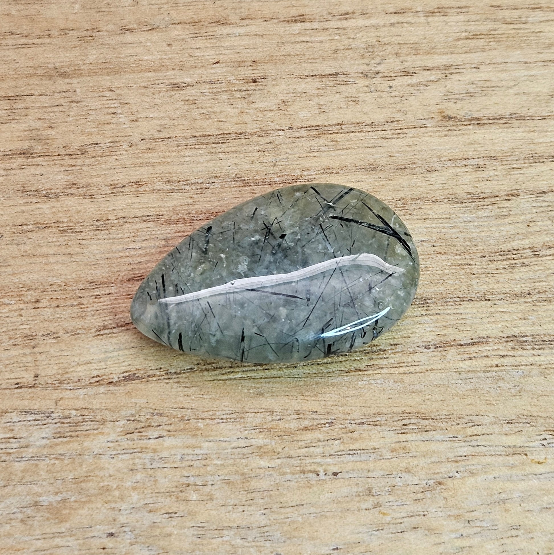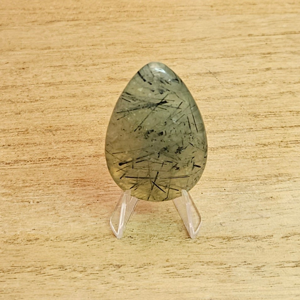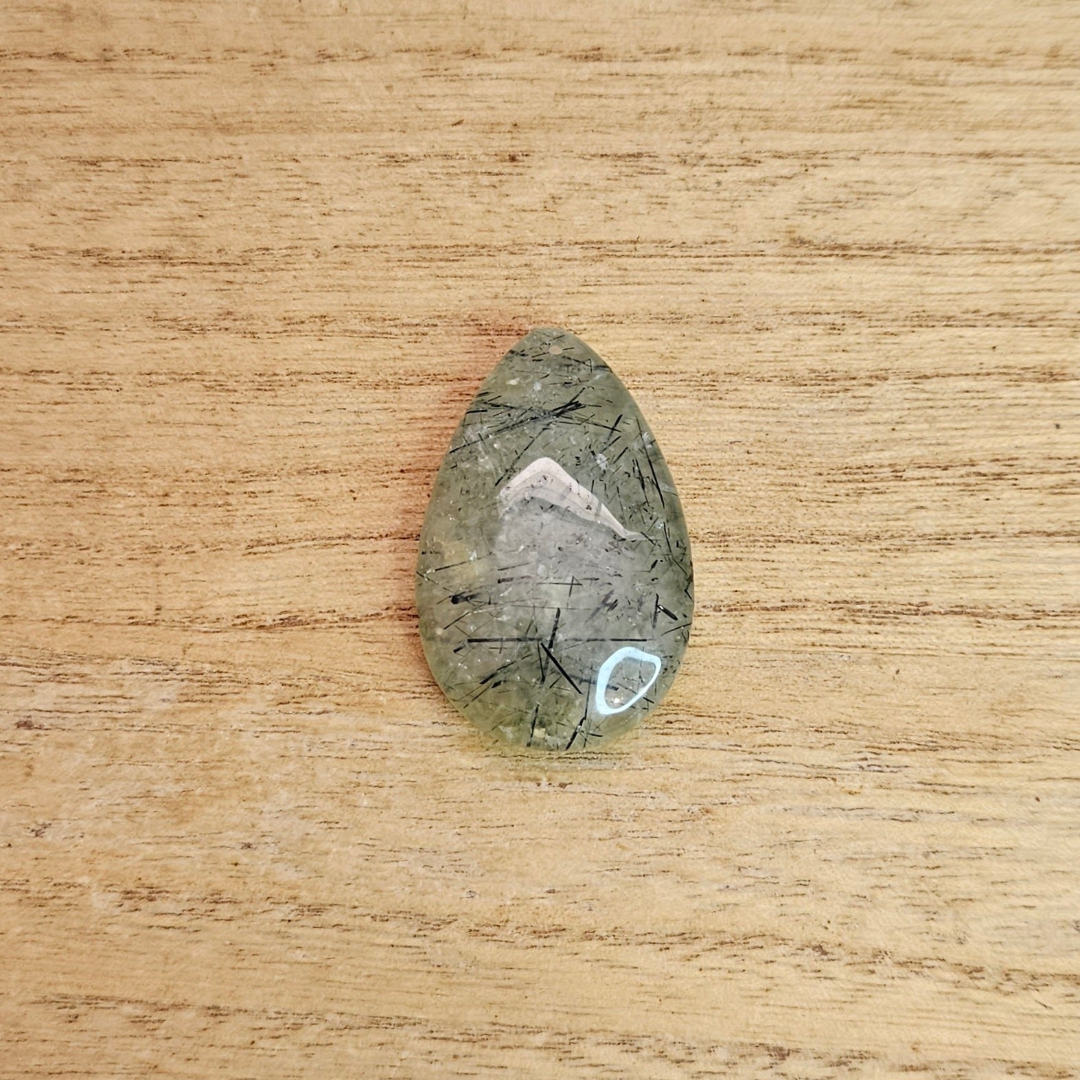 Epidote in Prehnite Tear-drop Cabochon.