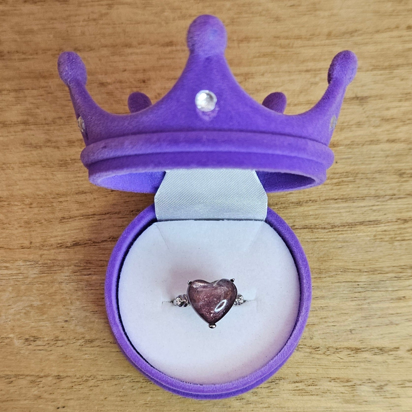 Purple Lepidolite Heart Adjustable Ring.