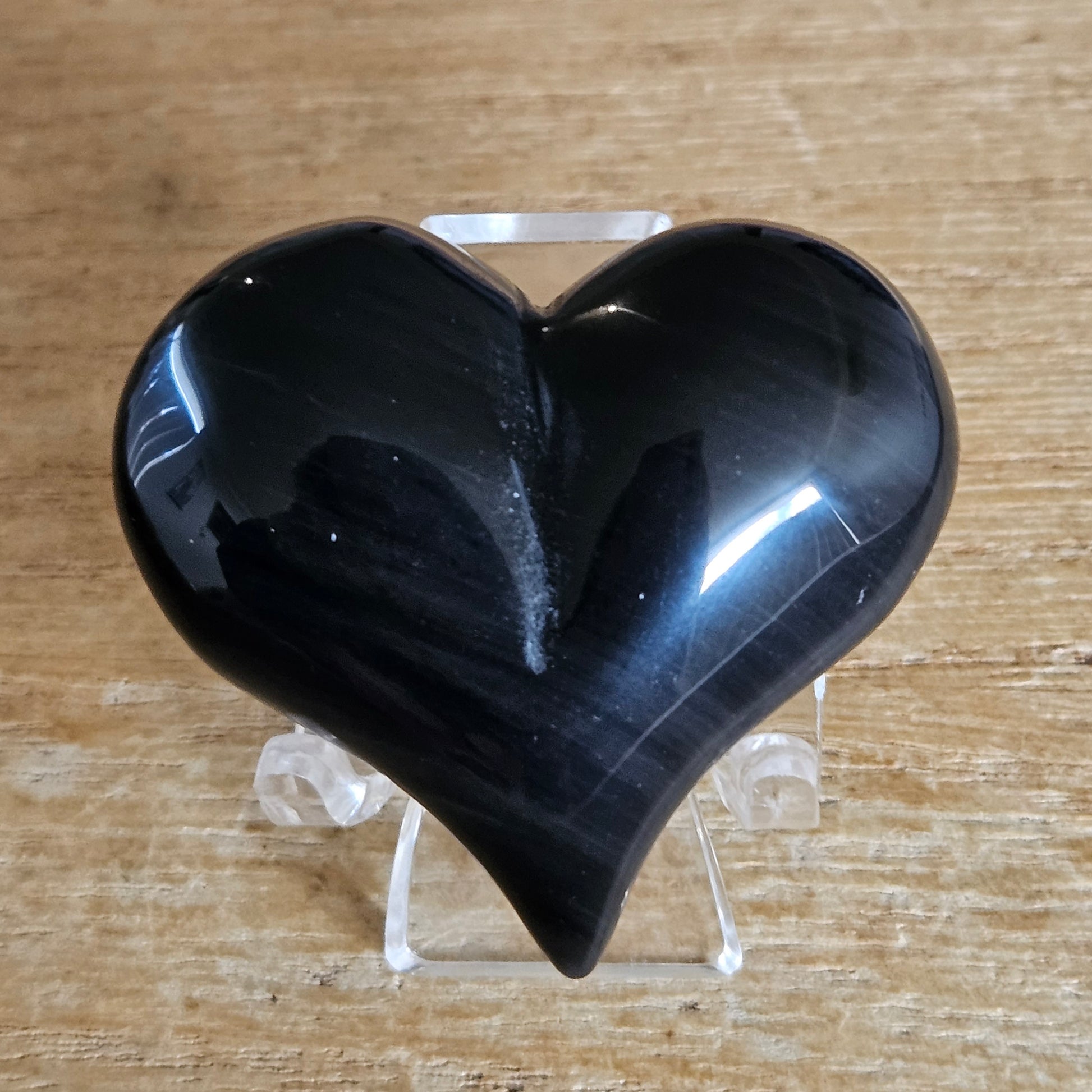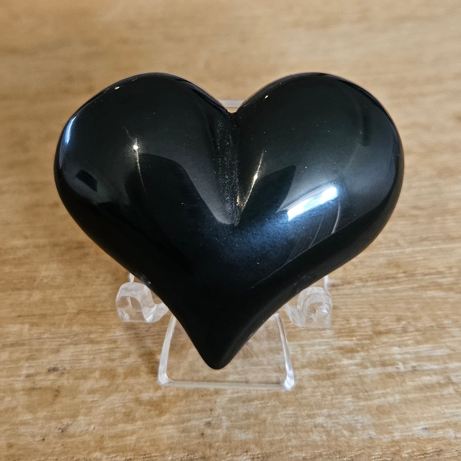 Add a touch of magic to your collection with our Rainbow Obsidian Heart Carvings. Sold separately, each carving showcases a unique subtle flash - one with a slight green and the other with a light purple banded flash. Perfect for displaying and bringing positive energy into any space.