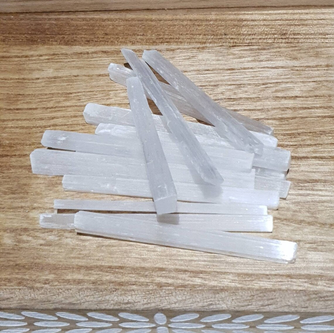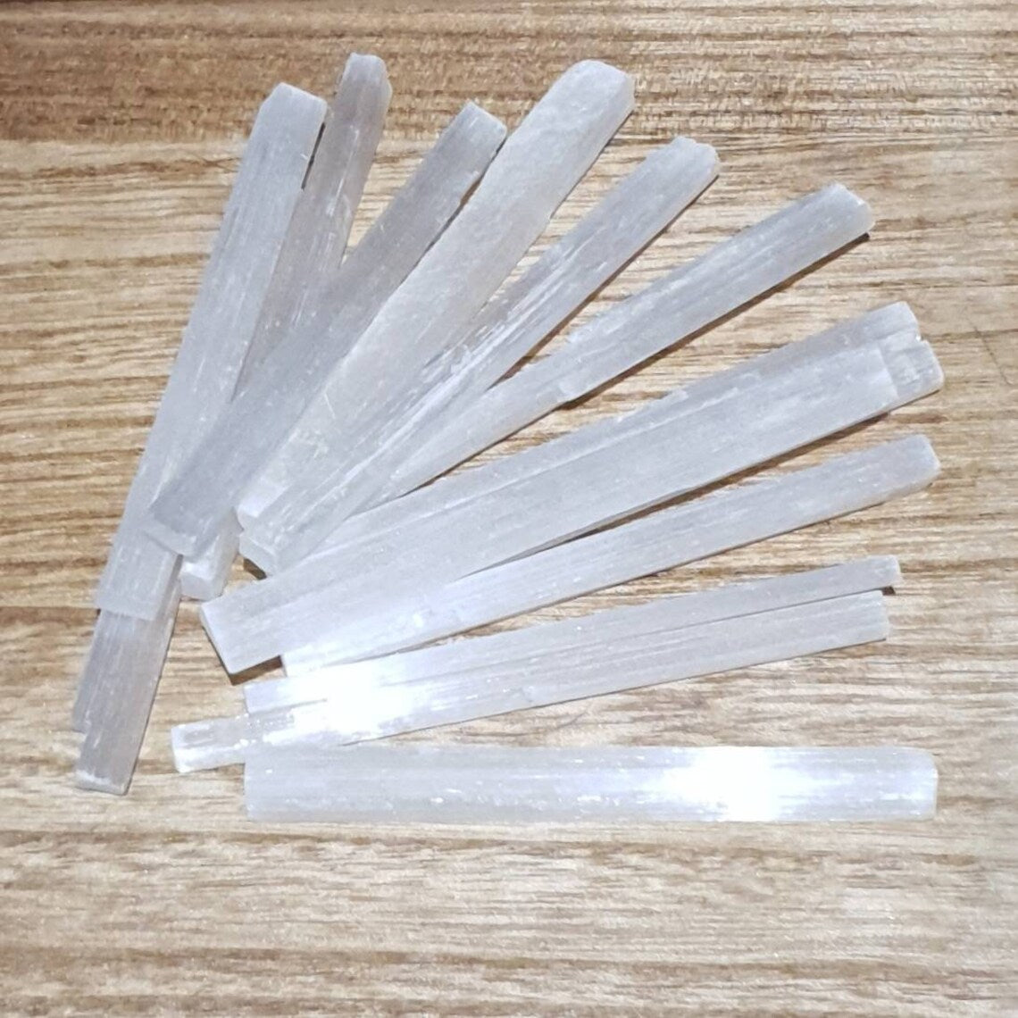 Shimmering shiney stunning raw selenite sticks. These selenite charging rods are perfect to add a natural shining look to your collection while cleansing them at the same time!