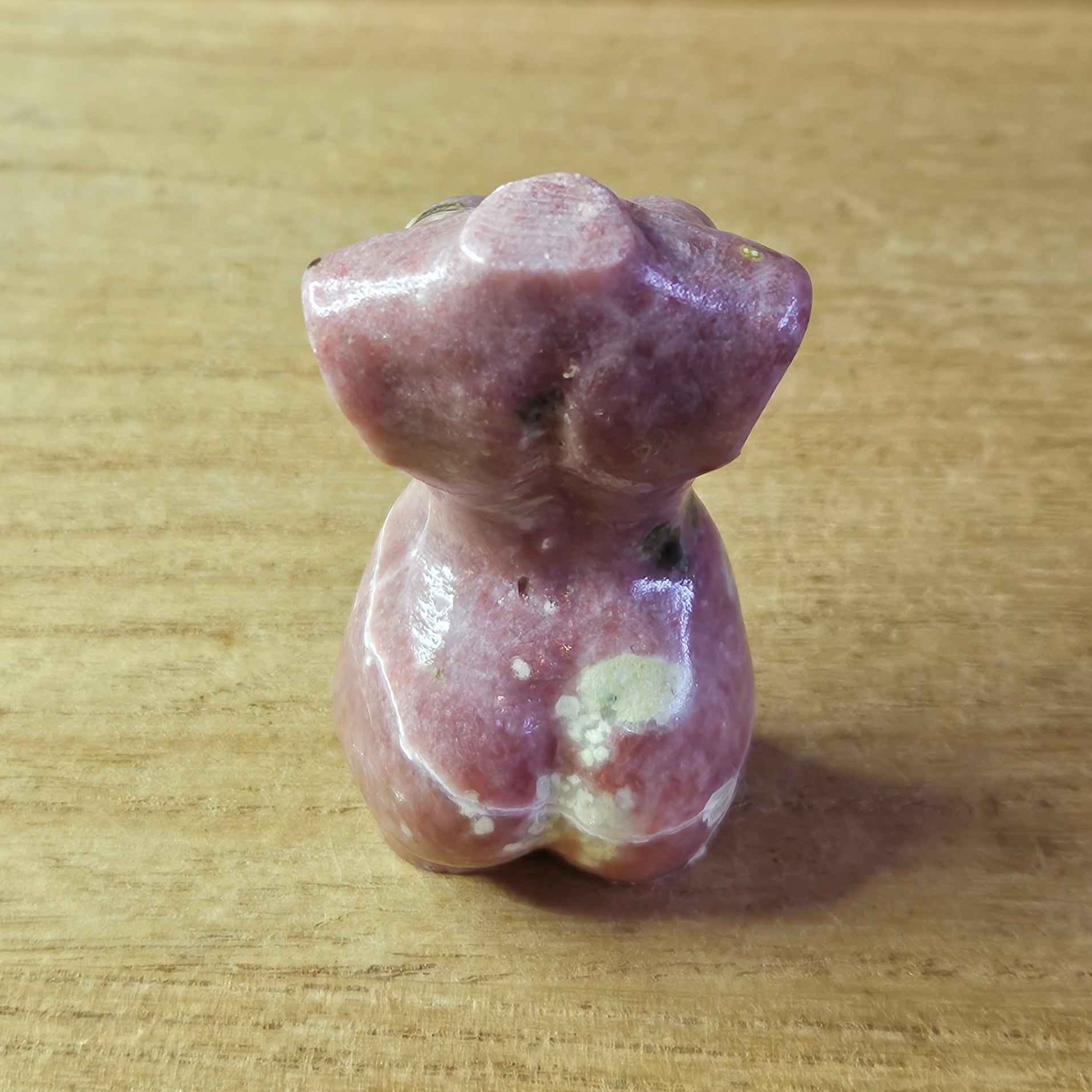 This exquisite carving is the perfect addition to any collection. Crafted from red guava Quartz, it showcases a stunning figure of a lady. Not only is it a beautiful display piece, but the Quartz also offers calming energy and enhances intuition. A must have for any crystal lover. Red guava quartz is a variety of quartz that gets its name from the color of a guava fruit's flesh, ranging from pale pink to deep reddish-pink. Its unique color is caused by mineral impurities like iron oxides, rutile, or other minerals within the quartz crystal lattice. Found primarily in Brazil and Madagascar.