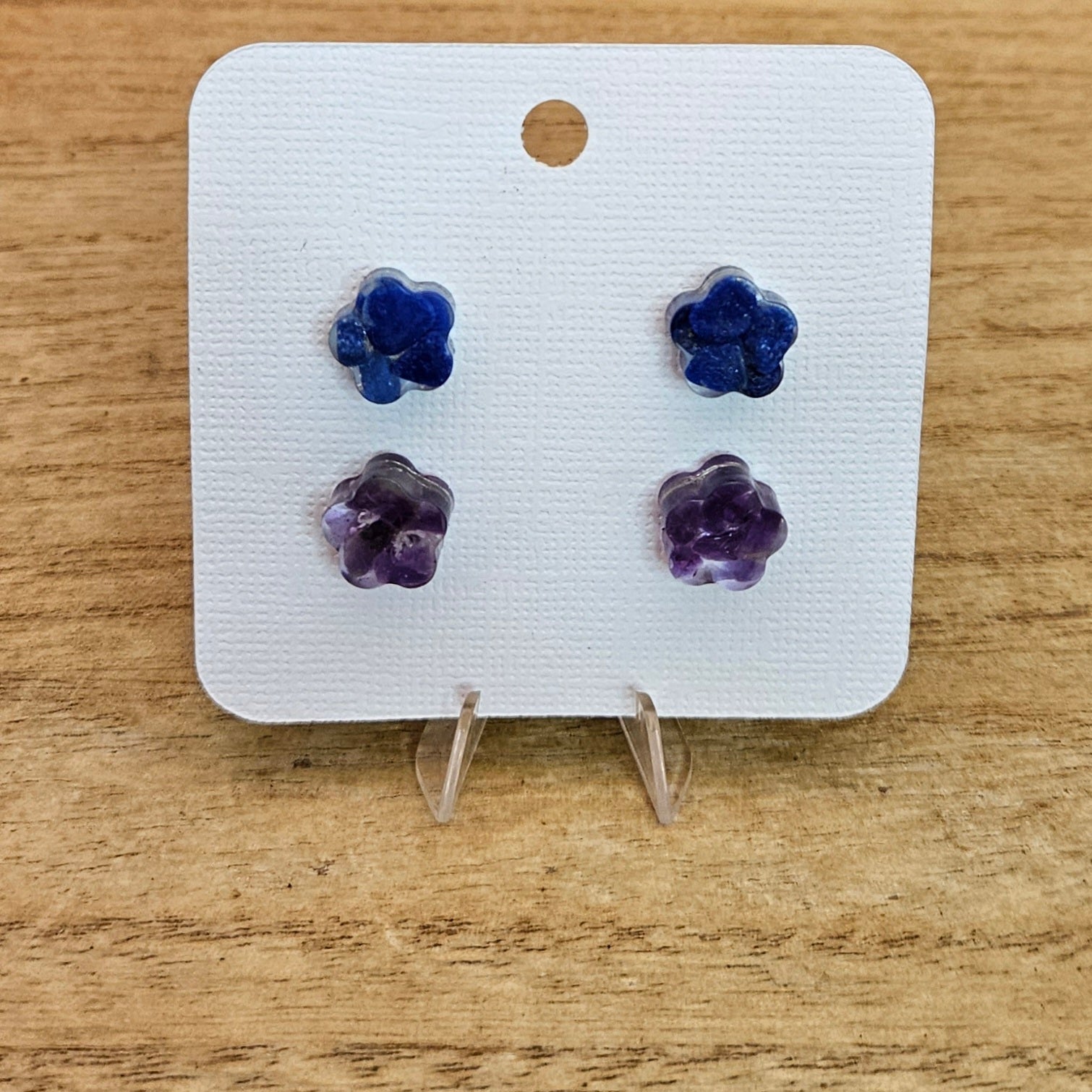 Resin Flower Stud Set. Lapis and Amethyst.