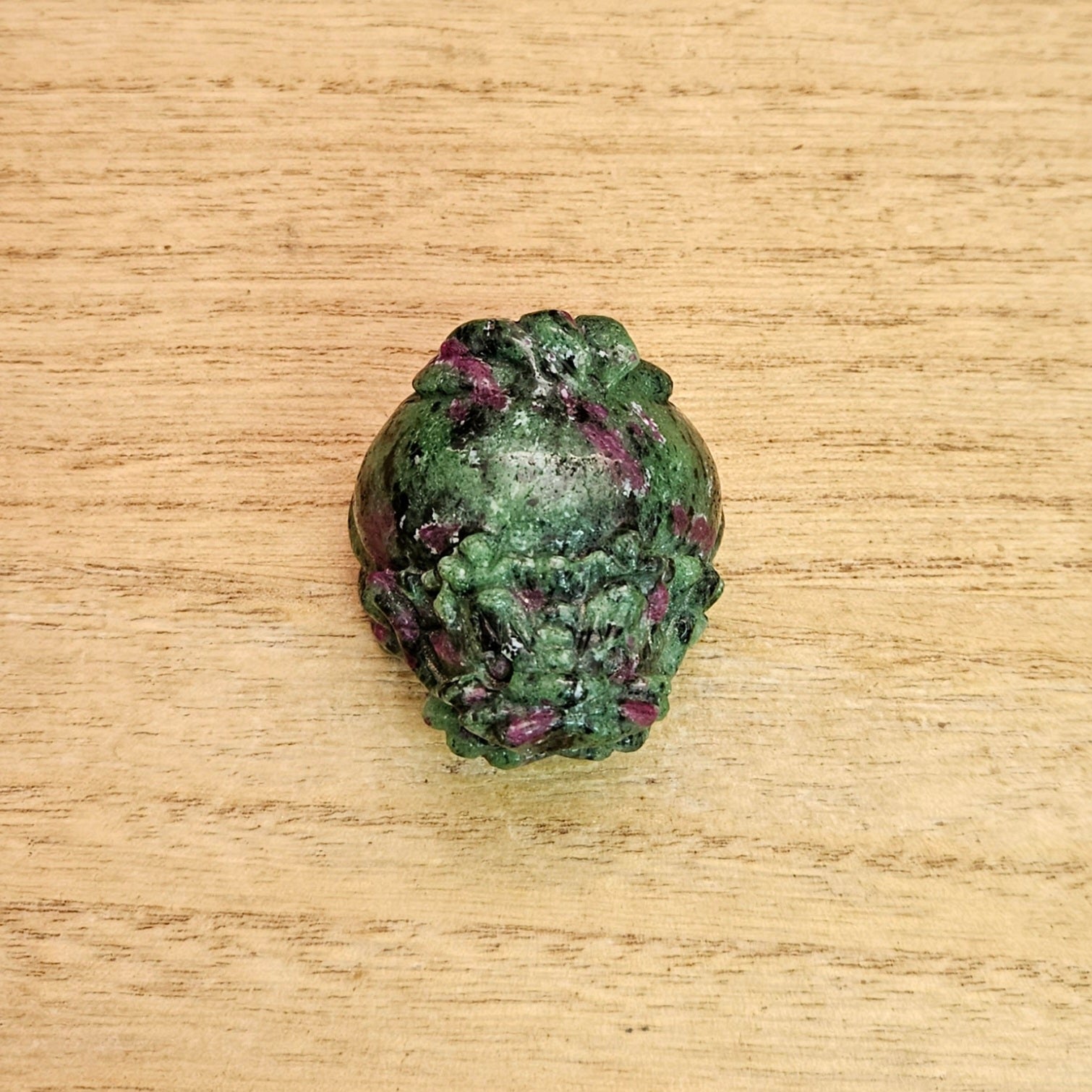 A Longgui is a mythical Chinese creature, a dragon turtle, combining a turtle's body with a dragon's head, symbolizing good fortune, longevity, power, success, and protection in Feng Shui, it represents courage and steadfastness. This vibrant Longgui Carving is crafted from natural ruby zoizite, adding a beautiful pop of color to your collection. Under UV light, the ruby zoizite glows in a striking red hue, making it a unique and eye-catching piece.