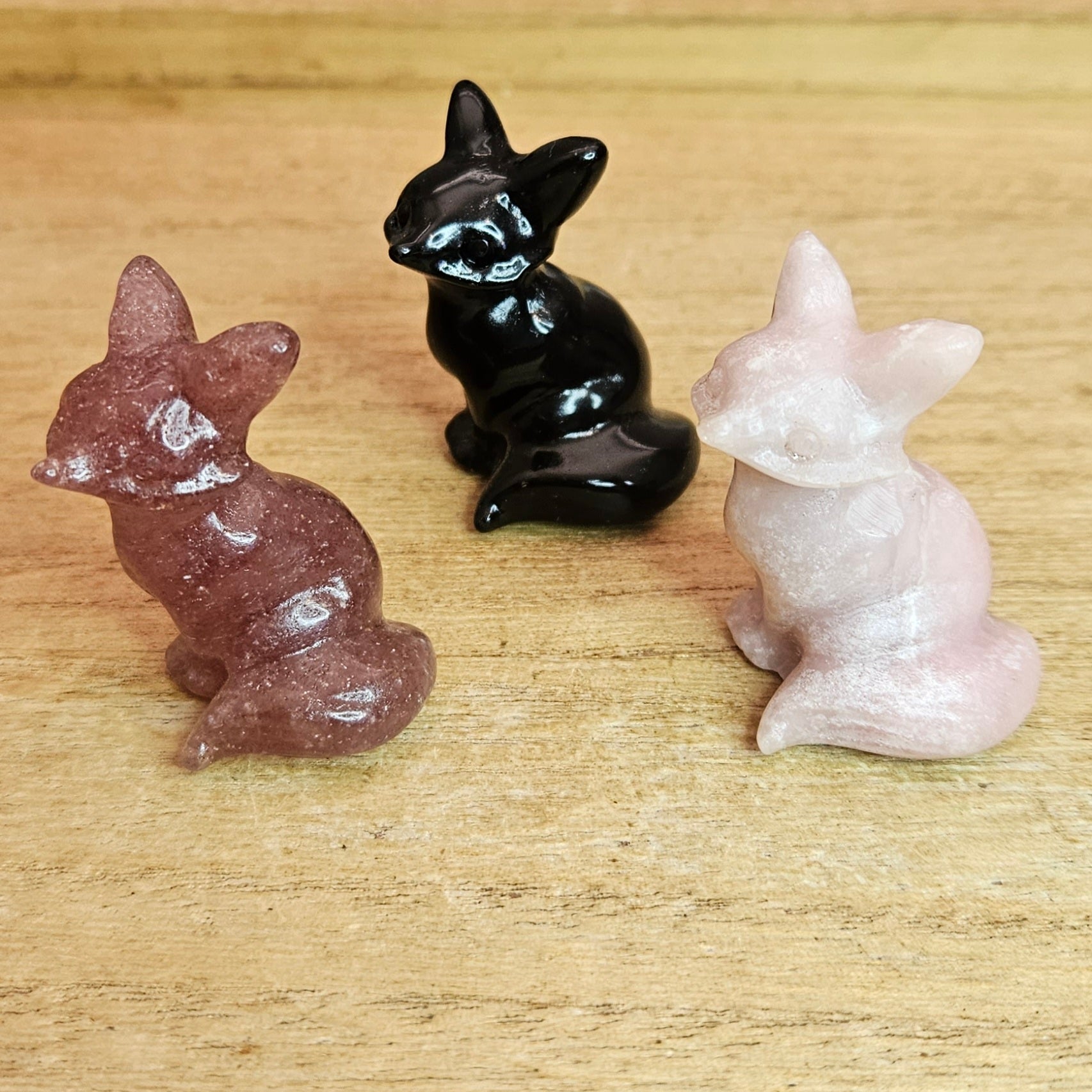 Add a touch of cuteness to your home with our Sitting Fox Carvings! Each sold separately, these carvings come in Strawberry Quartz, Obsidian, and Pink Opal. Their adorable faces will surely brighten up any room. Choose your favorite material or collect them all!
