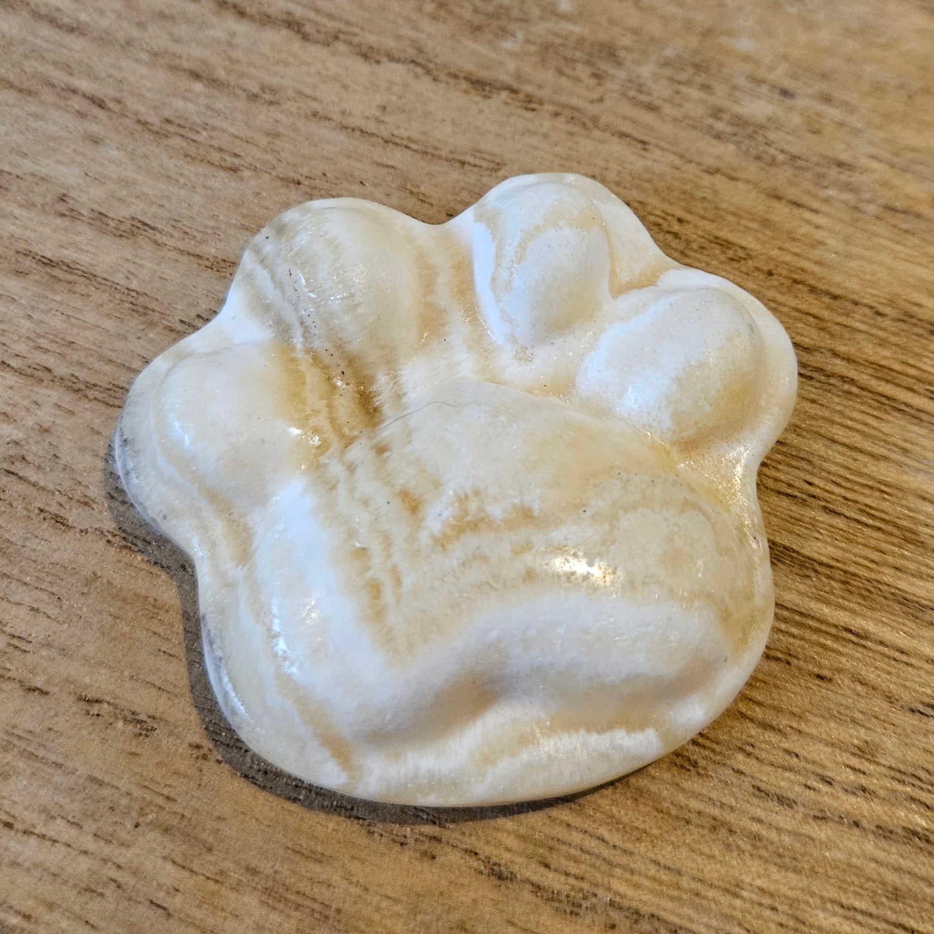 Get ready for some paws-itive vibes with our puffy paw shaped crystal carvings! These unique pieces will add a playful touch to your home decor while also bringing positive energy into your daily life. Paw-fect for any fur friendly people! Puppy or kitty you can't go wrong with a paw! Available in Sodalite or Yellow Banded Calcite.