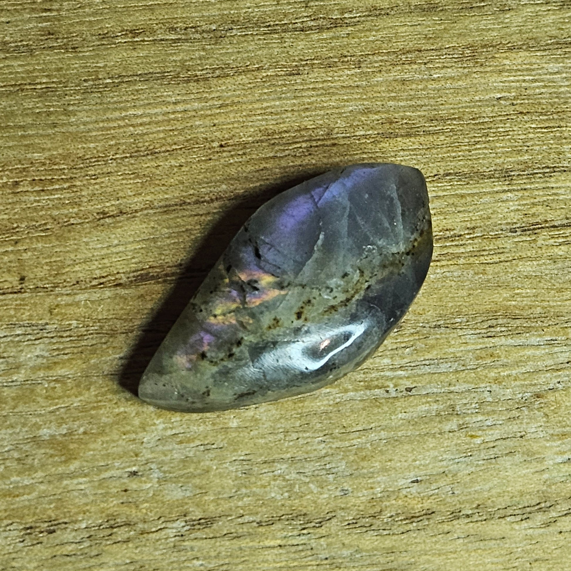 This Sunset Labradorite Cabochon is a stunning addition to any diy wire wrapping or jewelry making project. With its unique irregular shape and beautiful purple & yellow flashes, this Cabochon will add an eye catching touch to any design. Bring your creativity to life with this versatile and striking gemstone.