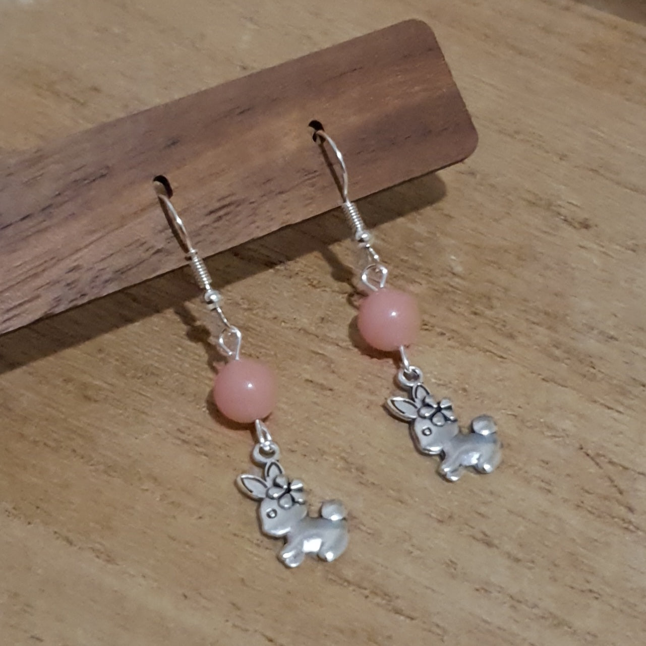 Happy Geeks Bunny Earrings. Pink Luminous Bead Earrings.