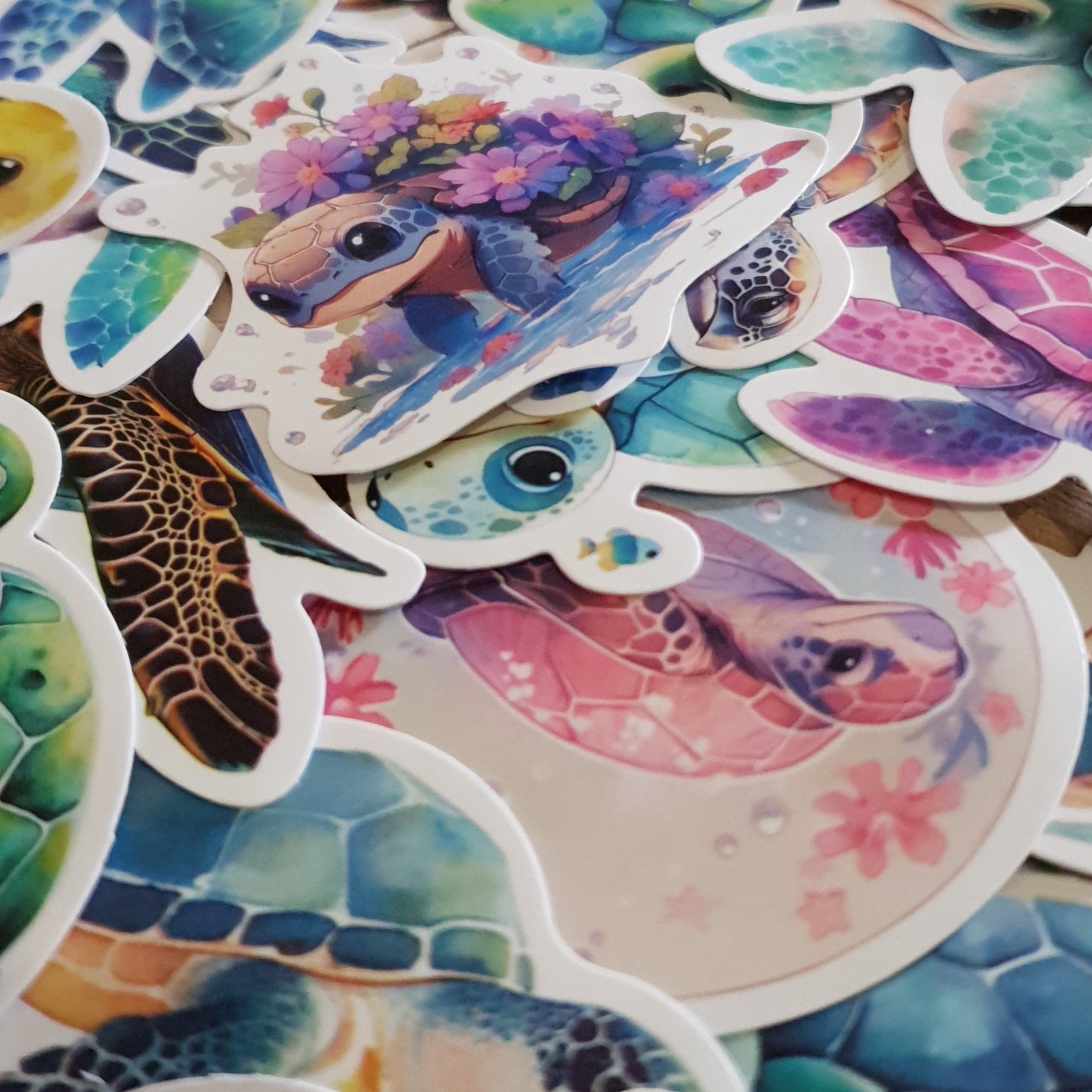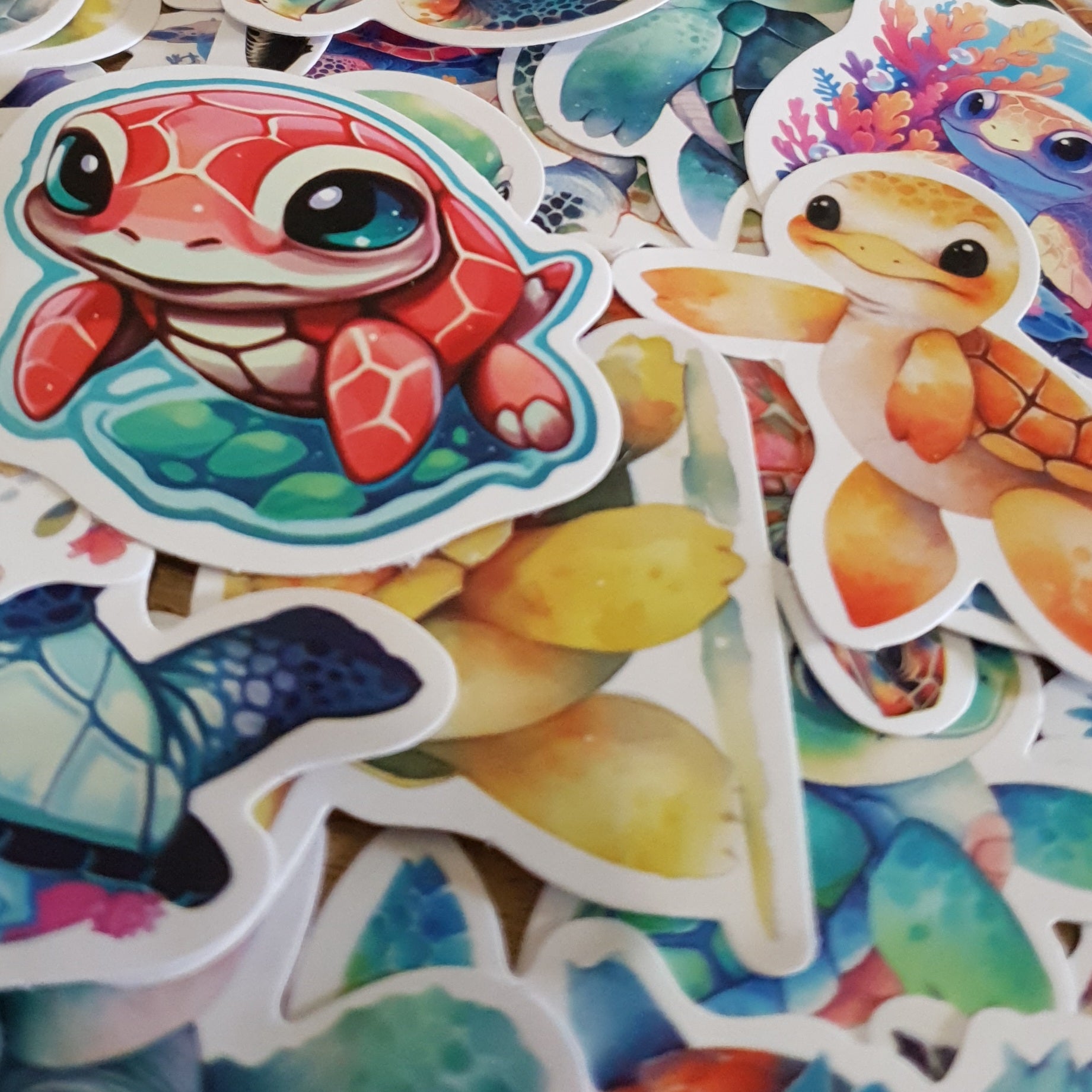 You will receive 10 randomly selected Turtle themed stickers. These stickers are not waterproof and for decorative purposes only! Not recommended for outdoor or vehicle use.