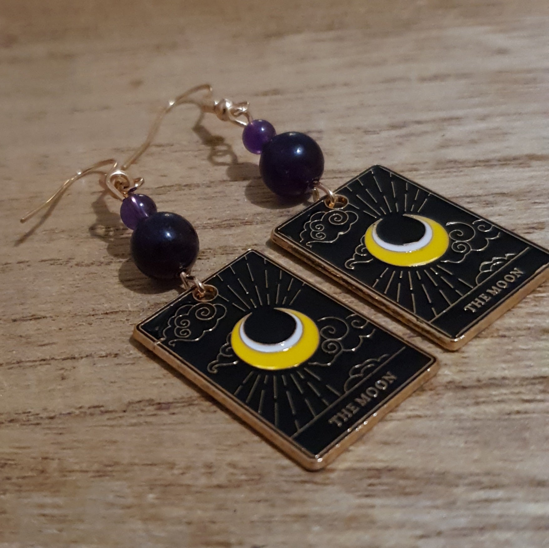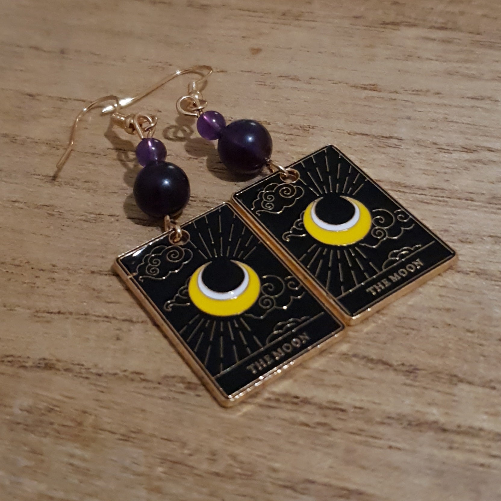 The Moon Tarot Earrings. Amethyst Moon Tarot Earrings.