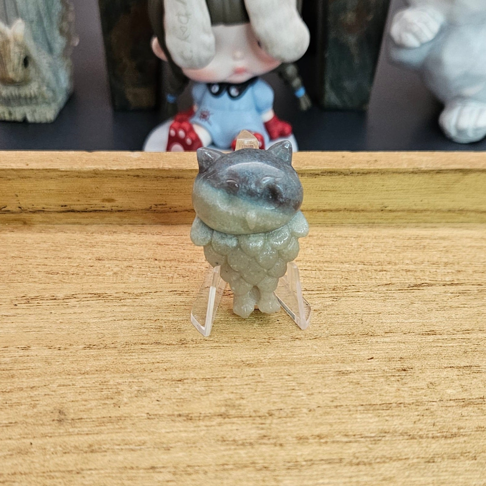 Add a unique touch of cuteness to your decor with this sweet little Trolleite Flat Carving. This little owl is sure to bring a smile to your face. Its flat design makes it perfect for display on any surface. A must have for any owl lover!