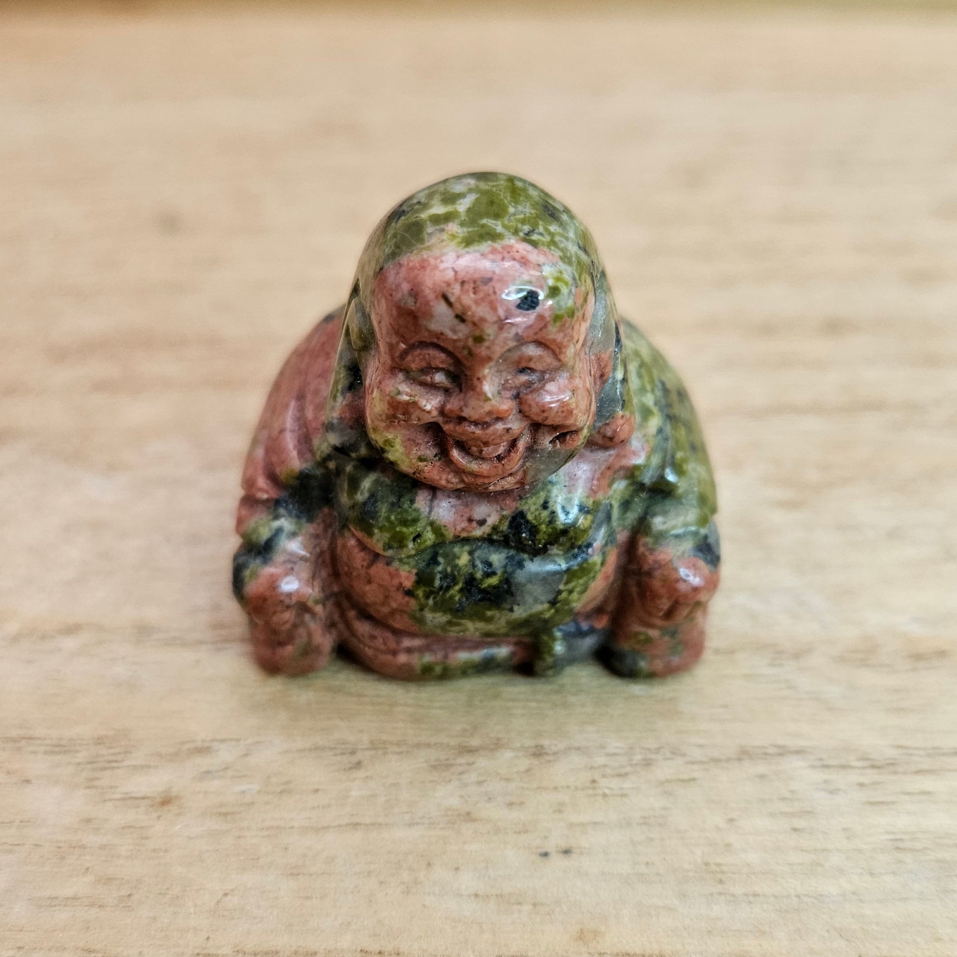 Unakite Laughing Buddha Carving.