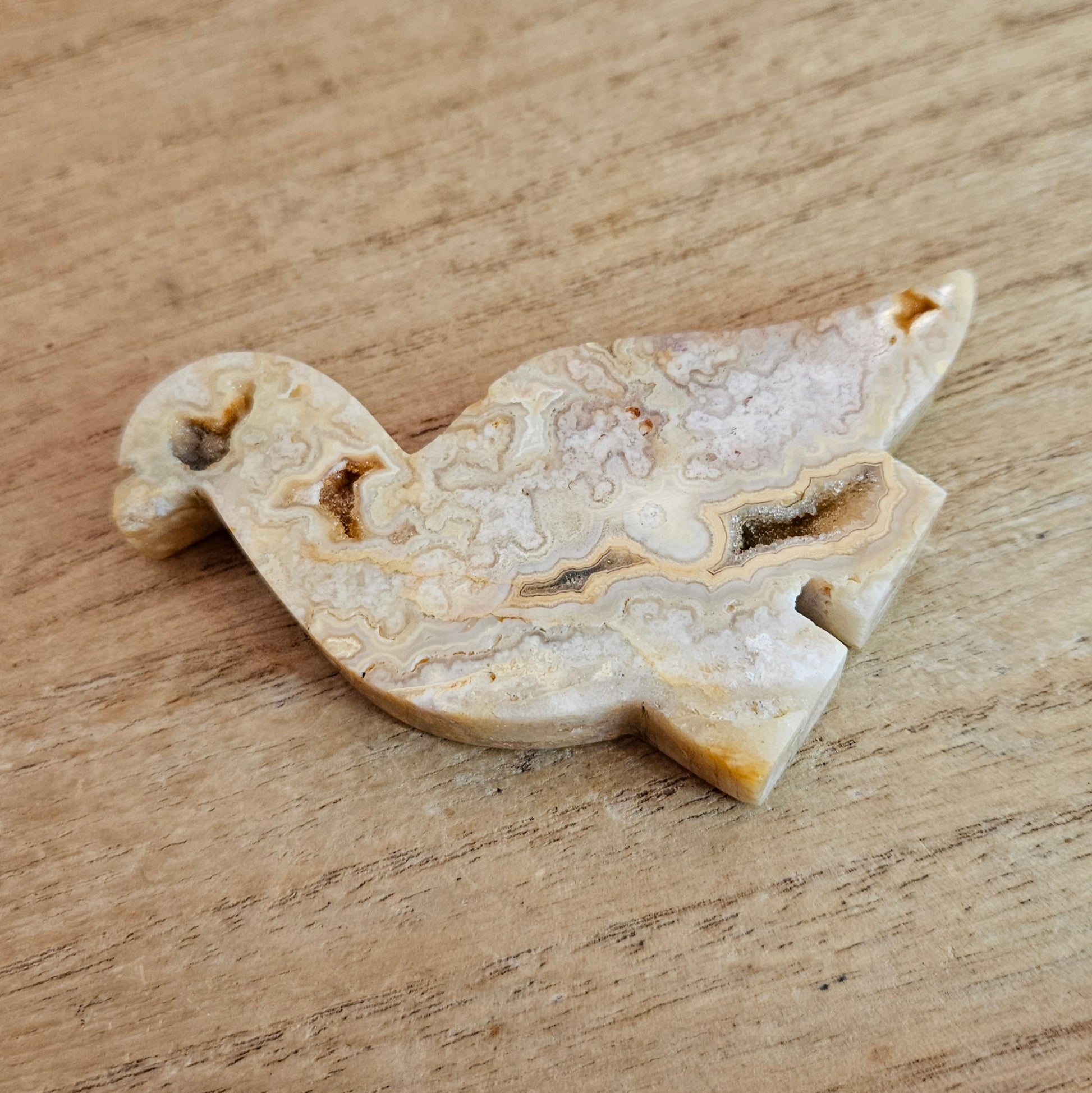This beautiful Yellow Crazy Lace Agate Brontosaurus Flat Carving features a unique and intricate design carved from natural crazy lace agate. With its vibrant colors and mesmerizing patterns, this piece will surely add a touch of beauty and wonder to any collection. Makes a perfect simple gift for any dinosaur or gemstone lover!