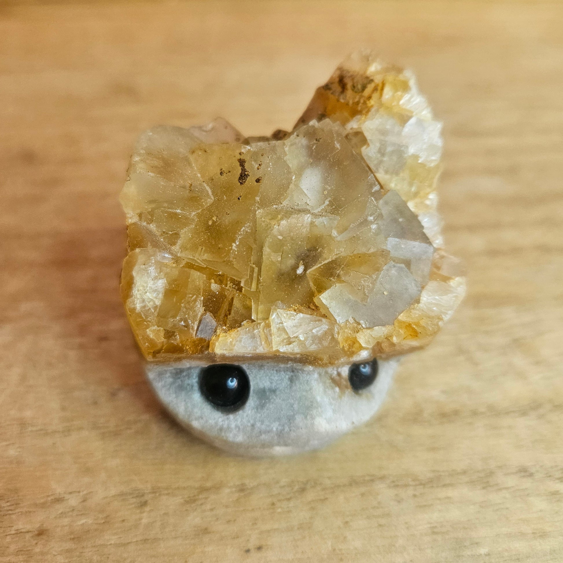 Meet your new best buddy! Yellow Fluorite Raw Cluster Buddy! With its adorable little eyes and cute mouth, this cluster will brighten up your space and your day. Its playful presence brings positive vibes and a unique touch to any room. Get ready to make a new friend with this little cutie! You'll never feel lonely with this Lil guy in your collection!